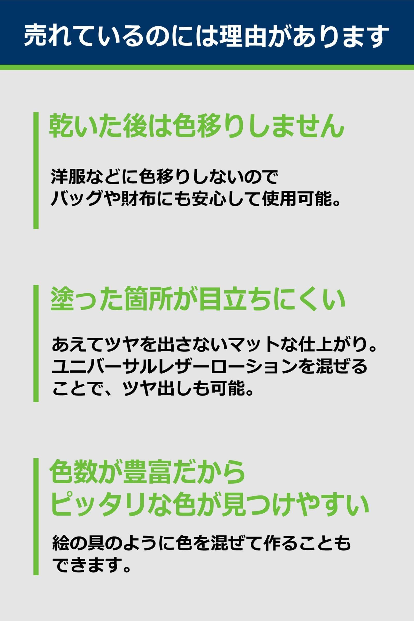 ベタつかず、衣服などへの色移りがないので、バッグ、財布、ベルト、ソファ、革ジャケット、革ジャン、車のシートなどにも使用できます。