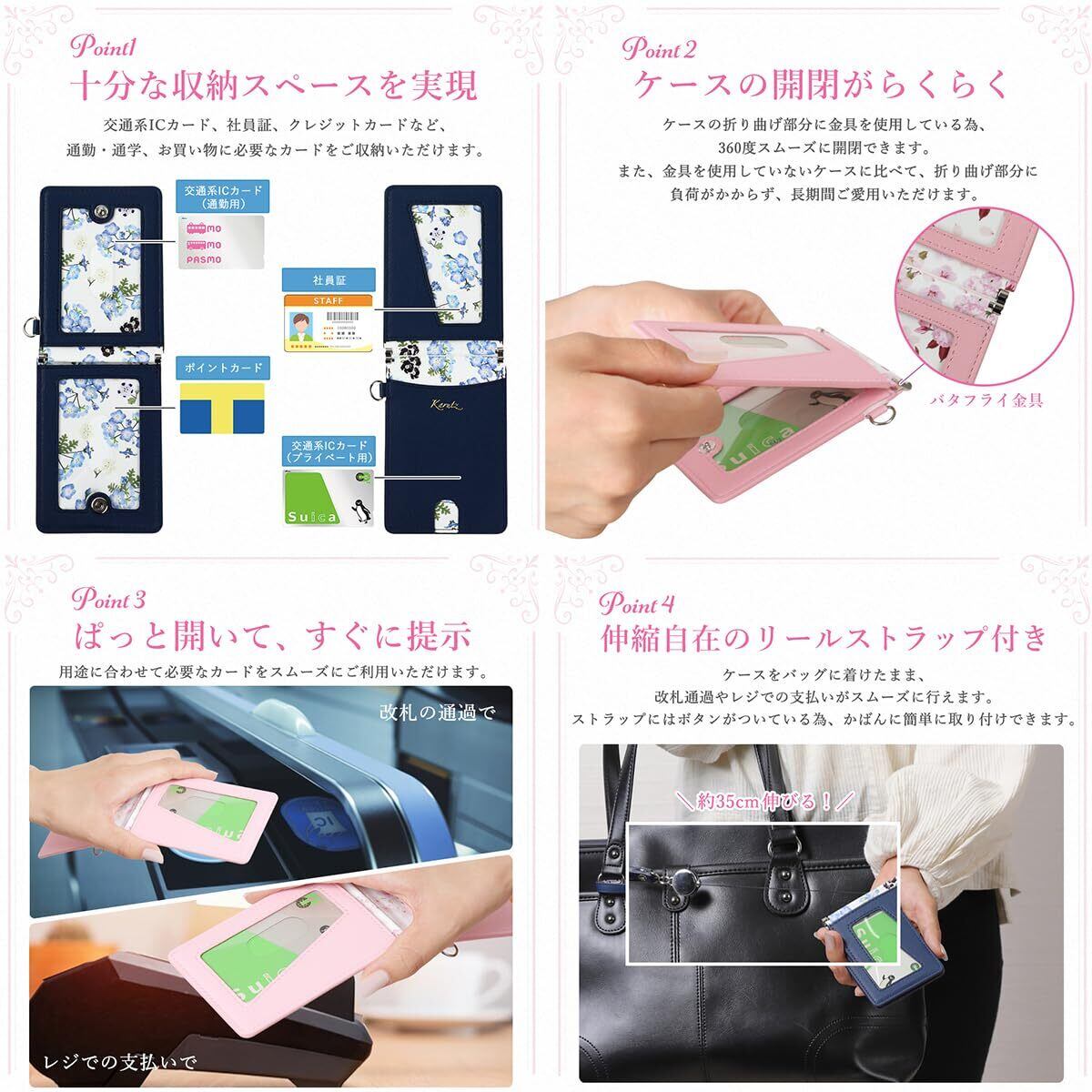 【人気商品】[karutz] パスケース 定期入れ レディース リール付き かわいい おしゃれ 二つ折り icカード ストラップ付 バタフライ式 レザー カードケース カード収納 薄型 花柄 ブラック PC001BK