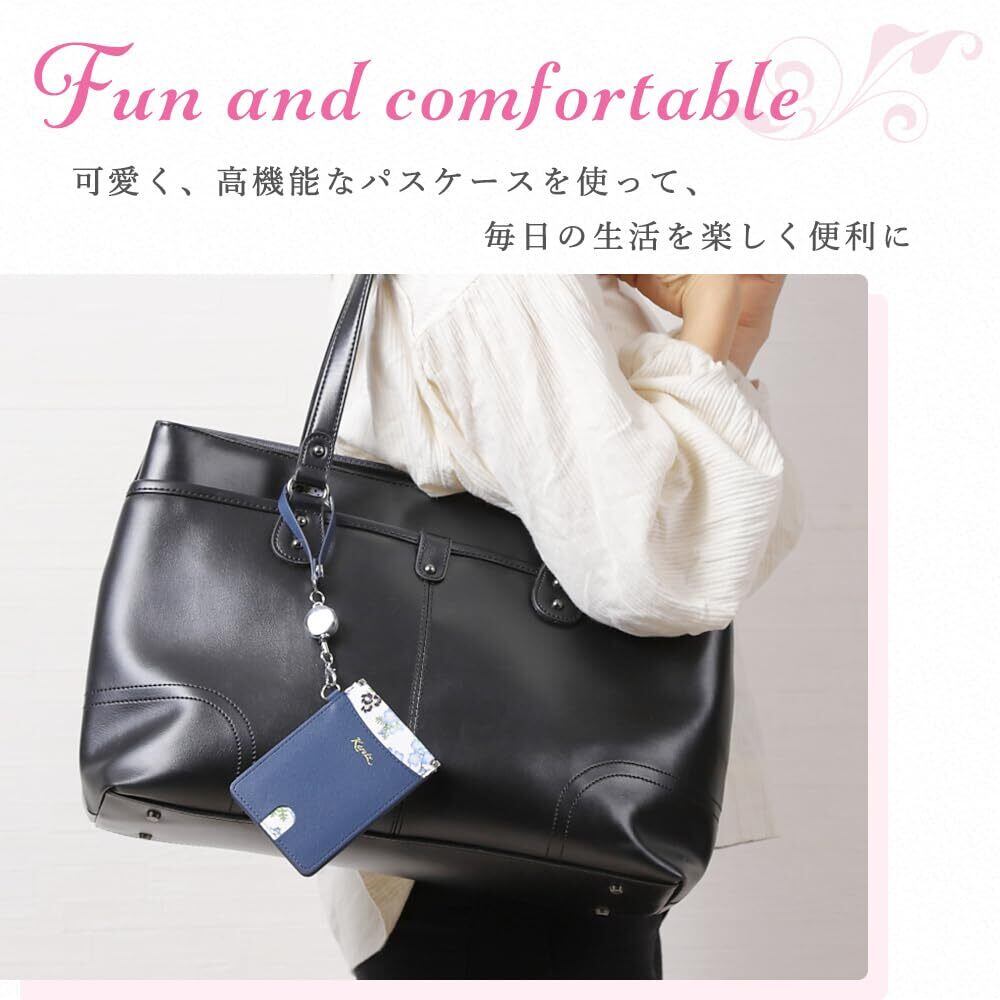 [karutz] パスケース 定期入れ レディース リール付き かわいい おしゃれ 二つ折り icカード ストラップ付 バタフライ式 レザー カードケース カード収納 薄型 花柄 ブラック PC001BK
