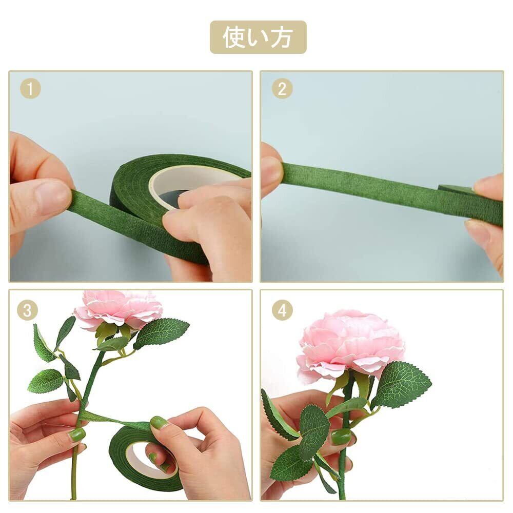 【高品質の素材】このフローラテープは、テクスチャ付き紙+水ベースの接着剤材を採用しており、高品質で耐久性、これにより、強い接着力と信頼性があります。また、滑らかで柔らかい質感があり、花の作品がより精巧になります。