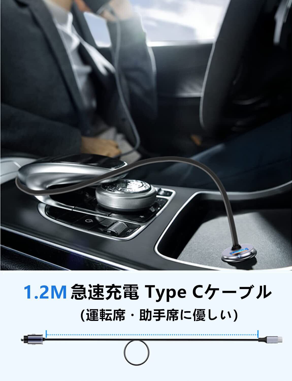 【1.2mの急速充電ケーブル】IDOLCO車 充電器 シガーソケットには1.2メートルケーブルが付属しており、後部座席での使用に適しています。マジック結束バンドデザインにより、車内をすっきりと整理でき、コードが絡まるのを防ぎます。乱雑な充電ケーブルを整理したり探したりする必要がなくなり、さらに時間を節約できます。