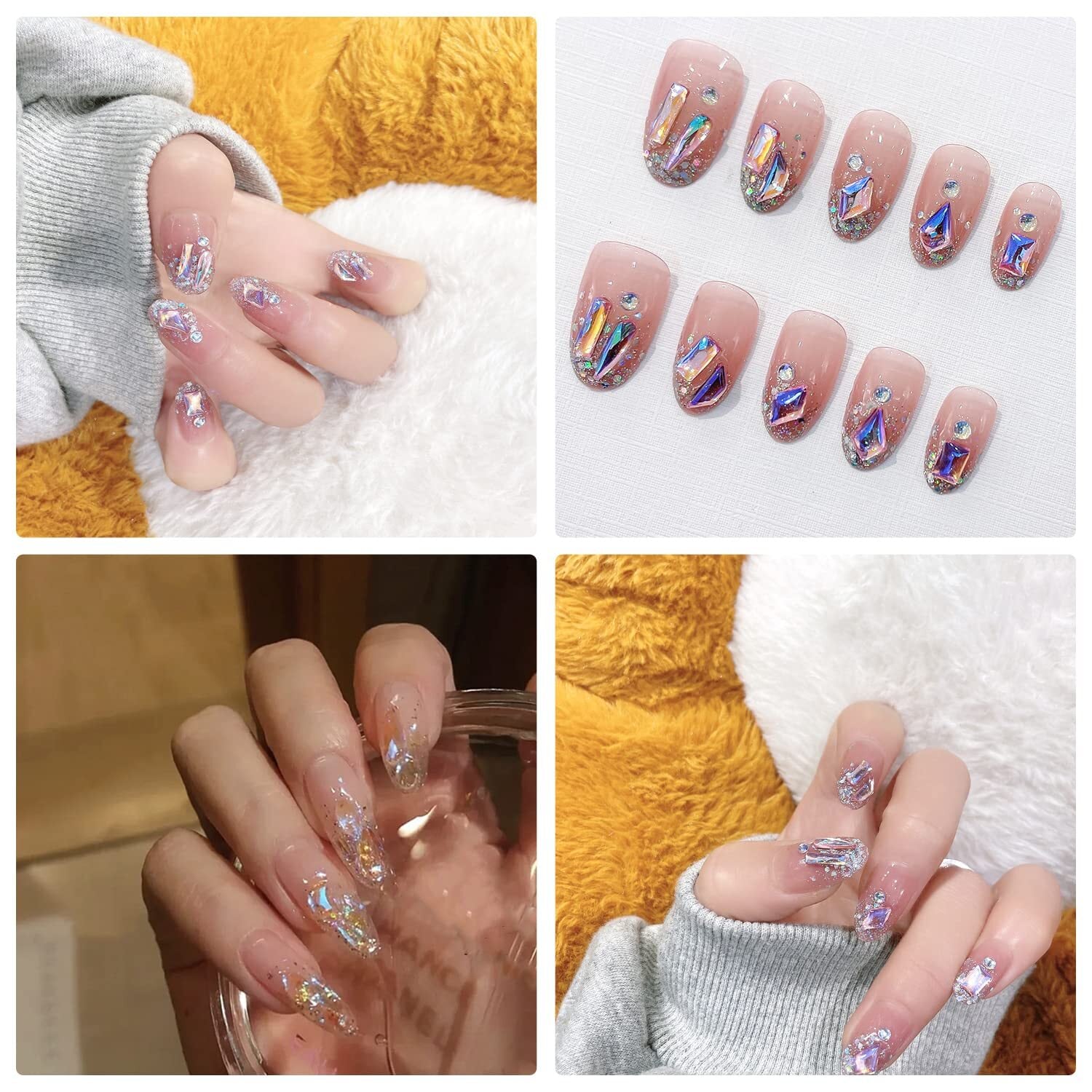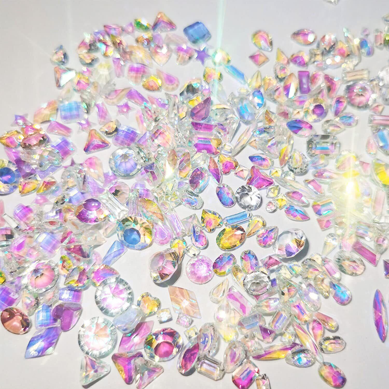 【複数の形状】この3DオーロラABカラーネイルアートドリルは、複数のデザインとさまざまな形状で提供され、クラフトに輝きと魅力を加え、爪をより明るく魅力的にします。スタイリッシュで機能的なガラスフラットバックラインストーンセットです。