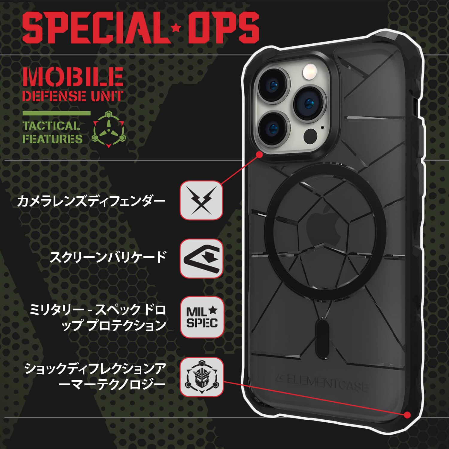 【数量限定】Element Case(エレメントケース) Special Ops iphone 14 用ケース - ミリタリーグレードのテクノロジーを採用したケース 耐衝撃 ケース 、MagSafe対応、スマホ、カメラ、画面を保護するケース