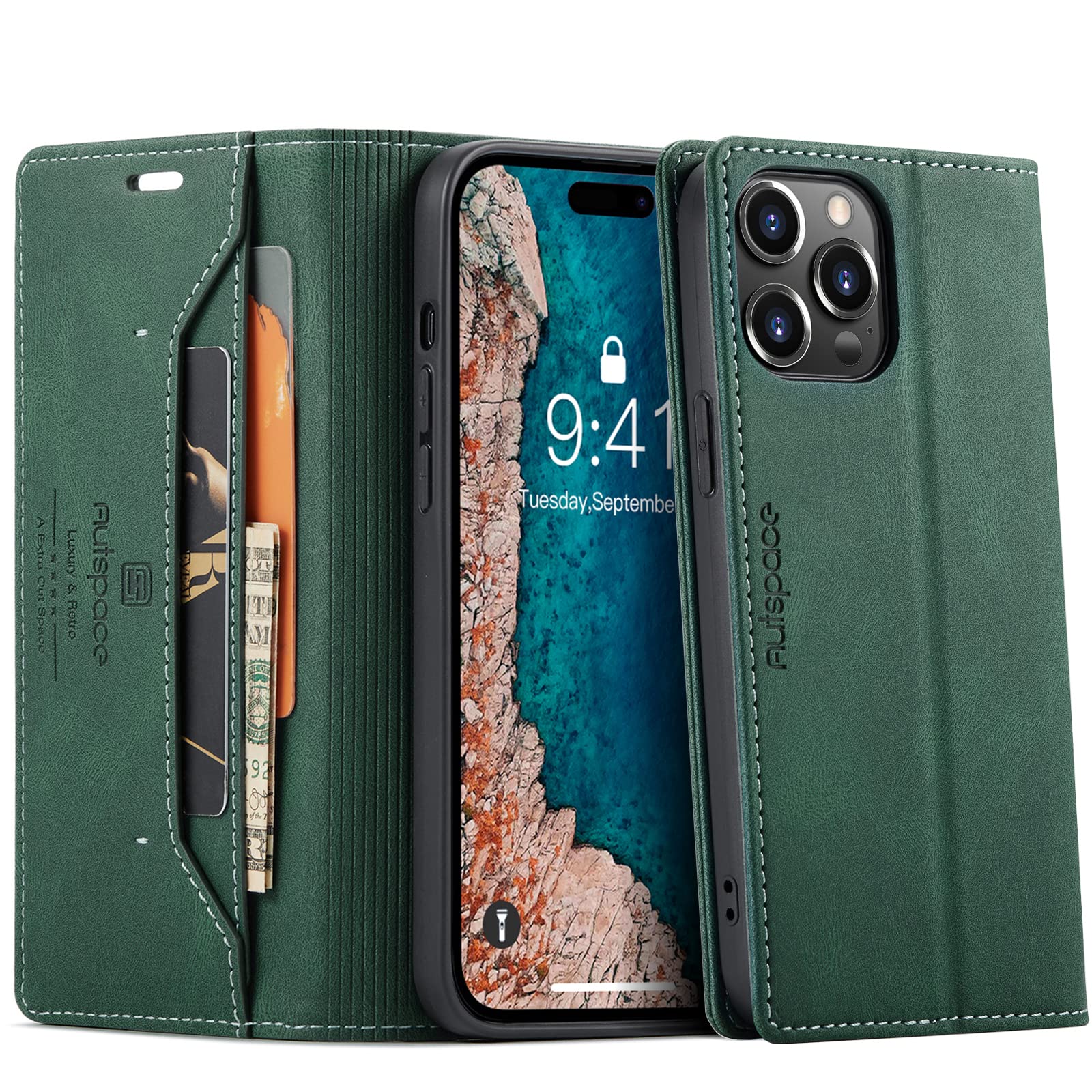 iPhone 15 Proケース 手帳 iphone15proケース iphone15pro手帳型ケース case RFID 磁気防止 スキミング防止 スマホケース スタンド機能 薄型 高質感(iPhone 15 Pro 6.1inch対応) レトログリーン