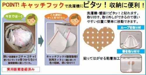 ●貼ってはがせるキャッチフック付きで洗濯機に貼りつければランドリーカゴとしてお使いいただけます