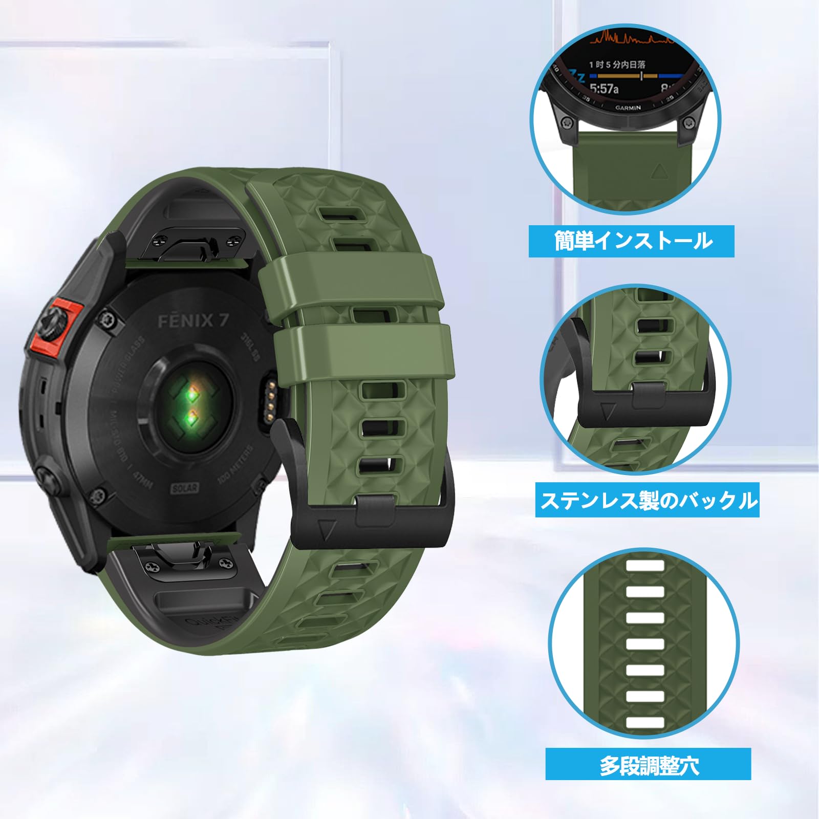 【新着商品】[LanQii] バンド22mm 用の QuickFit Garmin Fenix 8 47mm/Garmin Fenix E 47mm/Garmin Fenix 7 Pro Solar/Approach S70 47mm/Fenix 7 Pro/7/6/5/6 Pro対応 シリコンバンド [柔軟性・耐摩耗・耐久性] スポーツバンド 時計バンド ダークグリーン&ブラック
