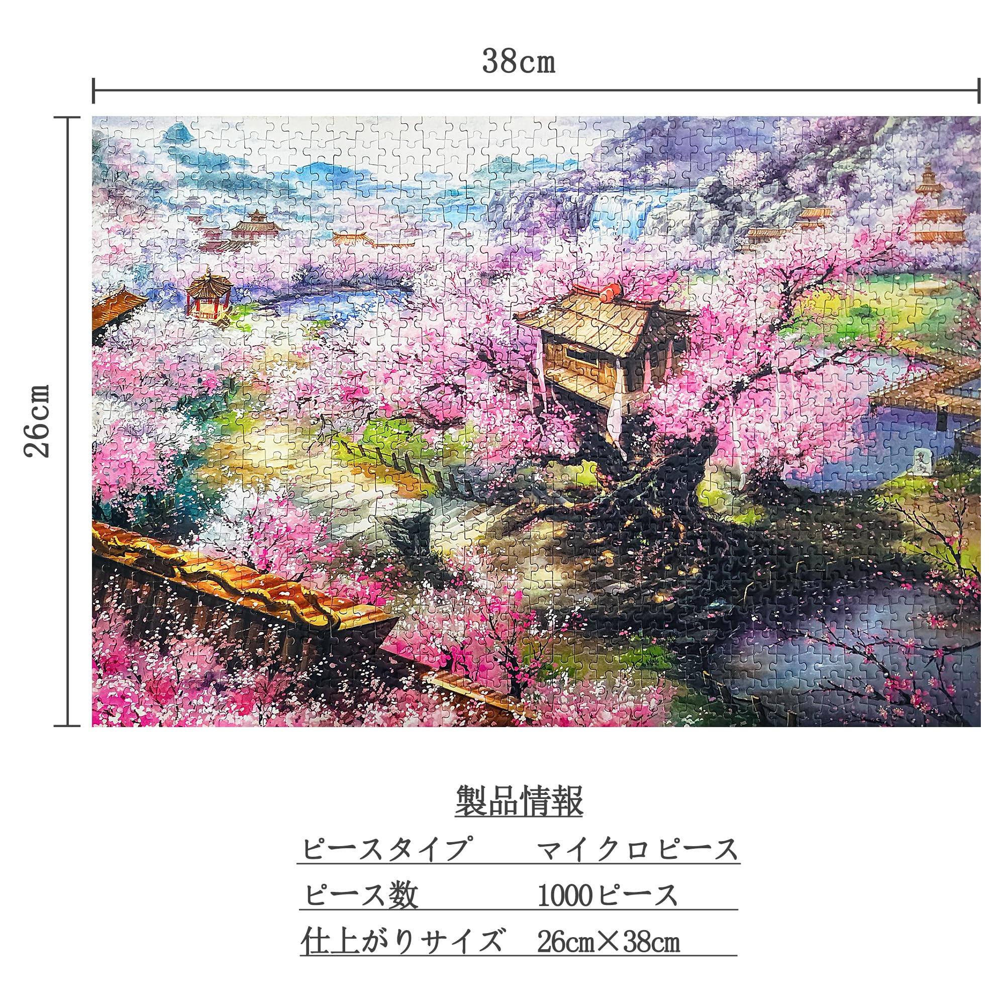 【人気商品】MISITU ジグソーパズル マイクロピース 1000ピース パズル 風景 絵画 桜 桜並木 自然 桃源郷 プレゼント 誕生日 クリスマス おしゃれ インテリア 桜の山荘 (26 x 38 cm)