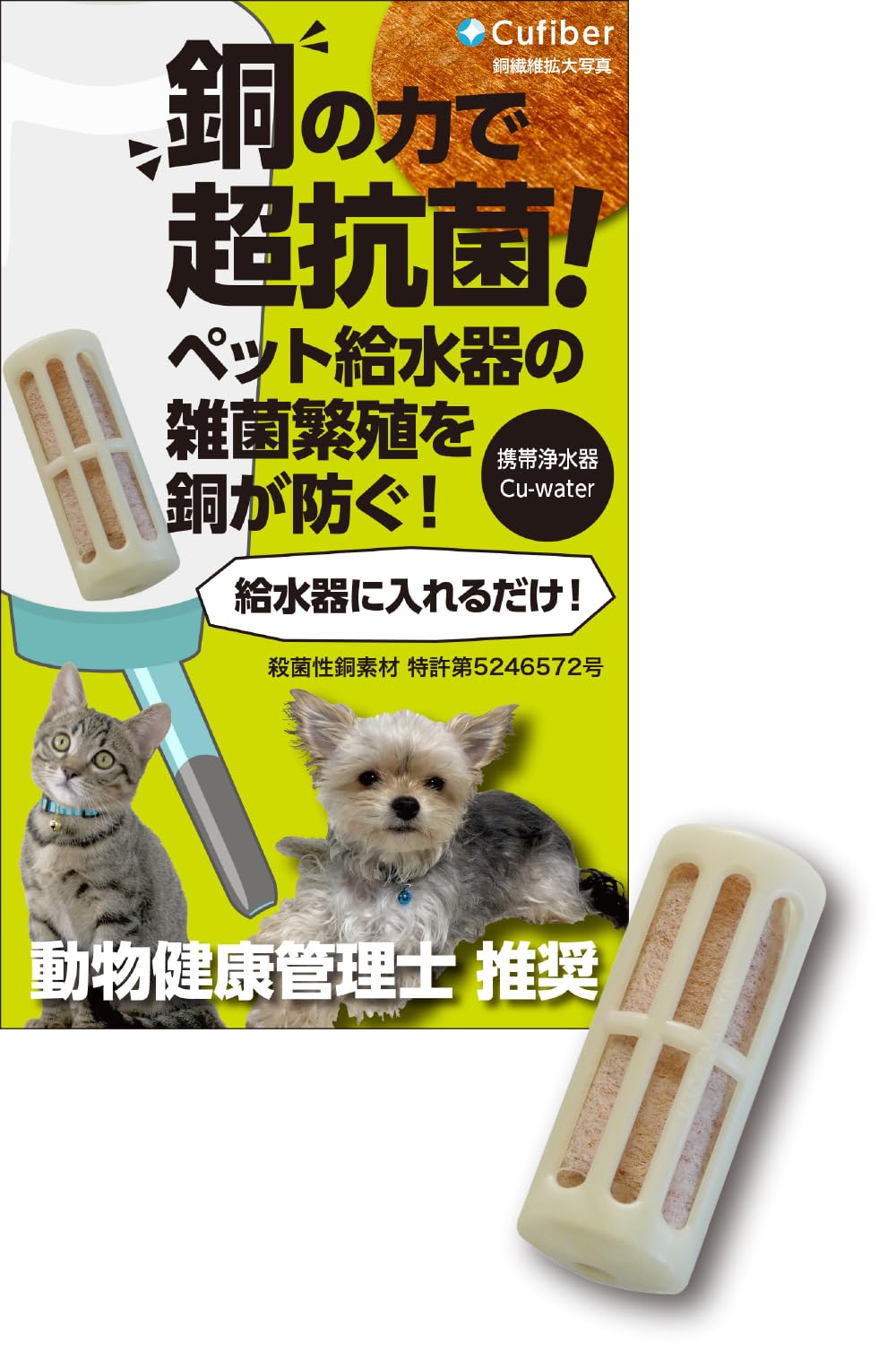 Cufiber 携帯浄水器 ペット用 Cu-water クウォーター 【動物健康管理士推奨】 500ミリリットル用 塩素除去 銅繊維 浄水ポット 浄水ボトル 給水器 給水ボトル 水飲み器
