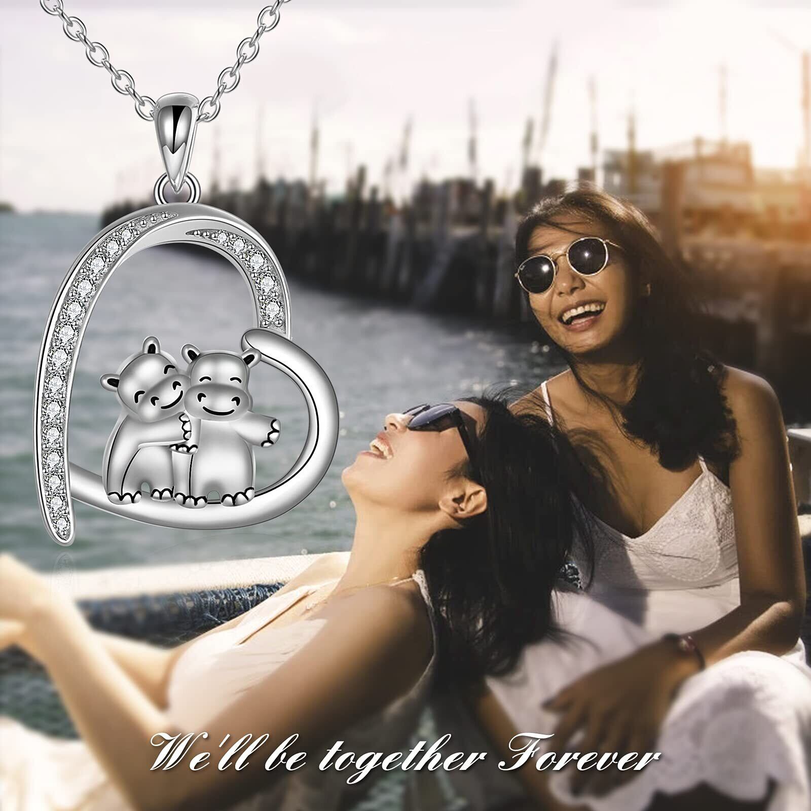 【可愛いカバネックレス】遊んでいるカバ二匹ペンダントネックレスは二人仲良い感じで、友情、愛情を象徴しています。ペンダントディテールの細かい部分までしっかりと作りこまれています。上品シルバー925製ネックレスで自分のご褒美も贈り物としてもおすすめです。