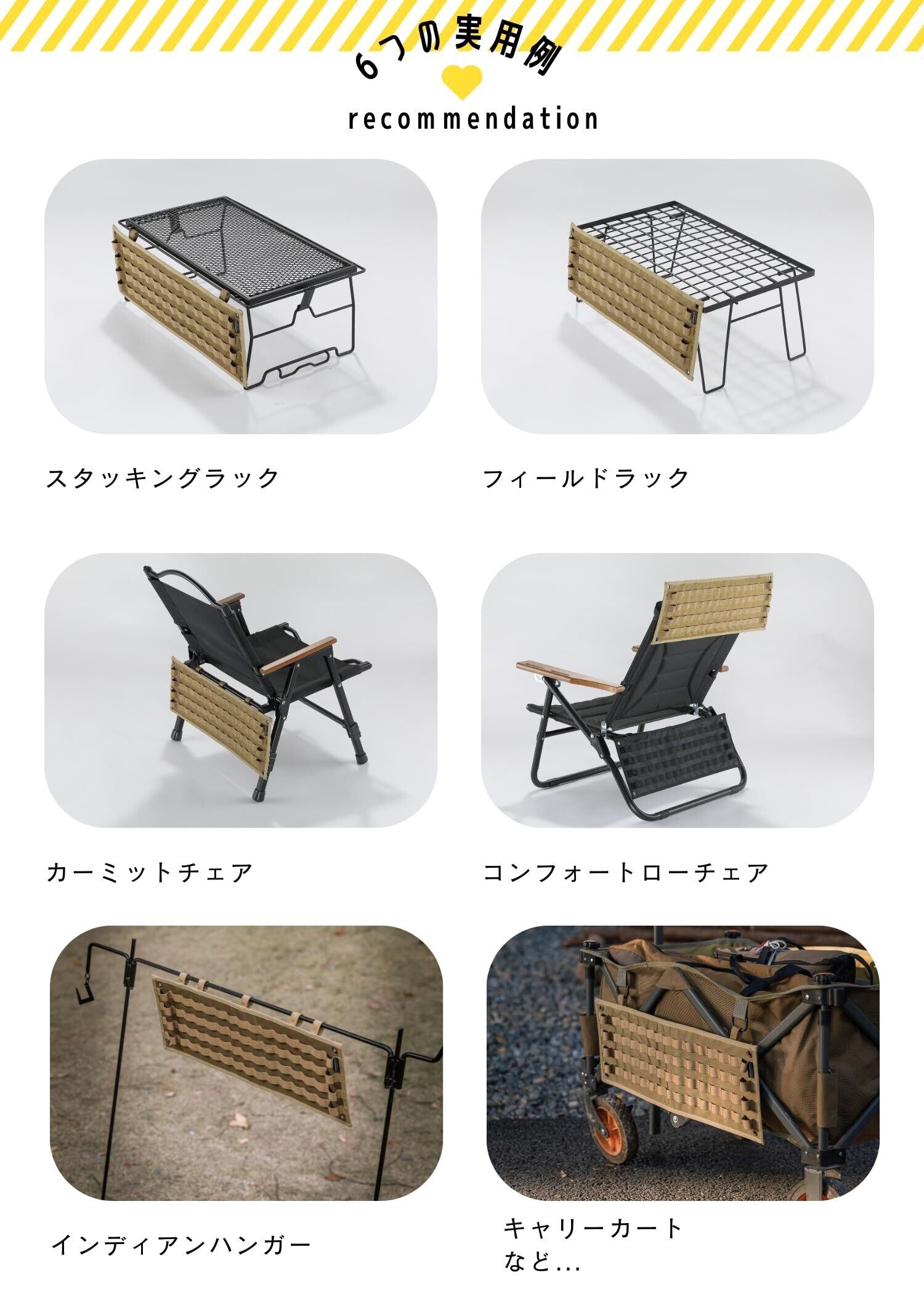 特徴:①フィールドラック、ハンガーラックスタンドに取り付けることができるストレージシートです。ギアを吊るして ・引っ掛けて使用に。