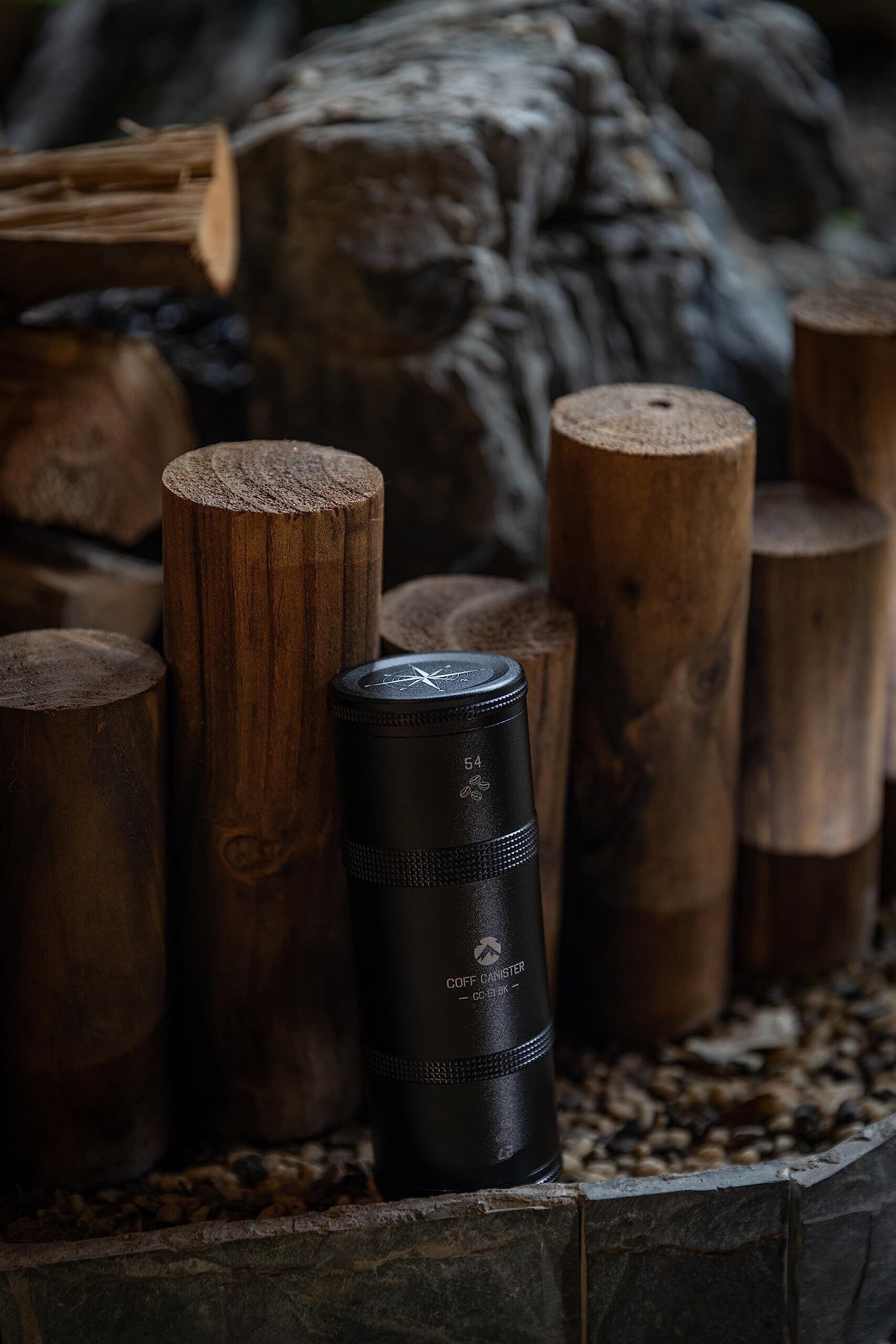 [キャンピングムーン] キャンプ コーヒー キャニスター 2段式 CNC削切 ジュラルミン 黒ギア CC-51-BK