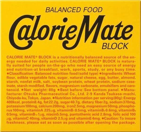 11種類のビタミンをじはじめ、6種類のミネラル、タンパク質、脂質、糖質を手軽に補給できるバランス栄養食品。 カロリーメイトブロック(4本入り)には、1日に必要なビタミンの約半分が含まれています。 ビタミンは1日に必要な量の約半分が含まれています ブロックタイプは1本100kcal、ゼリータイプは1袋100kcalと200kcal、リキッドタイプは1本200kcal、とカロリー計算が簡単に出来ます。