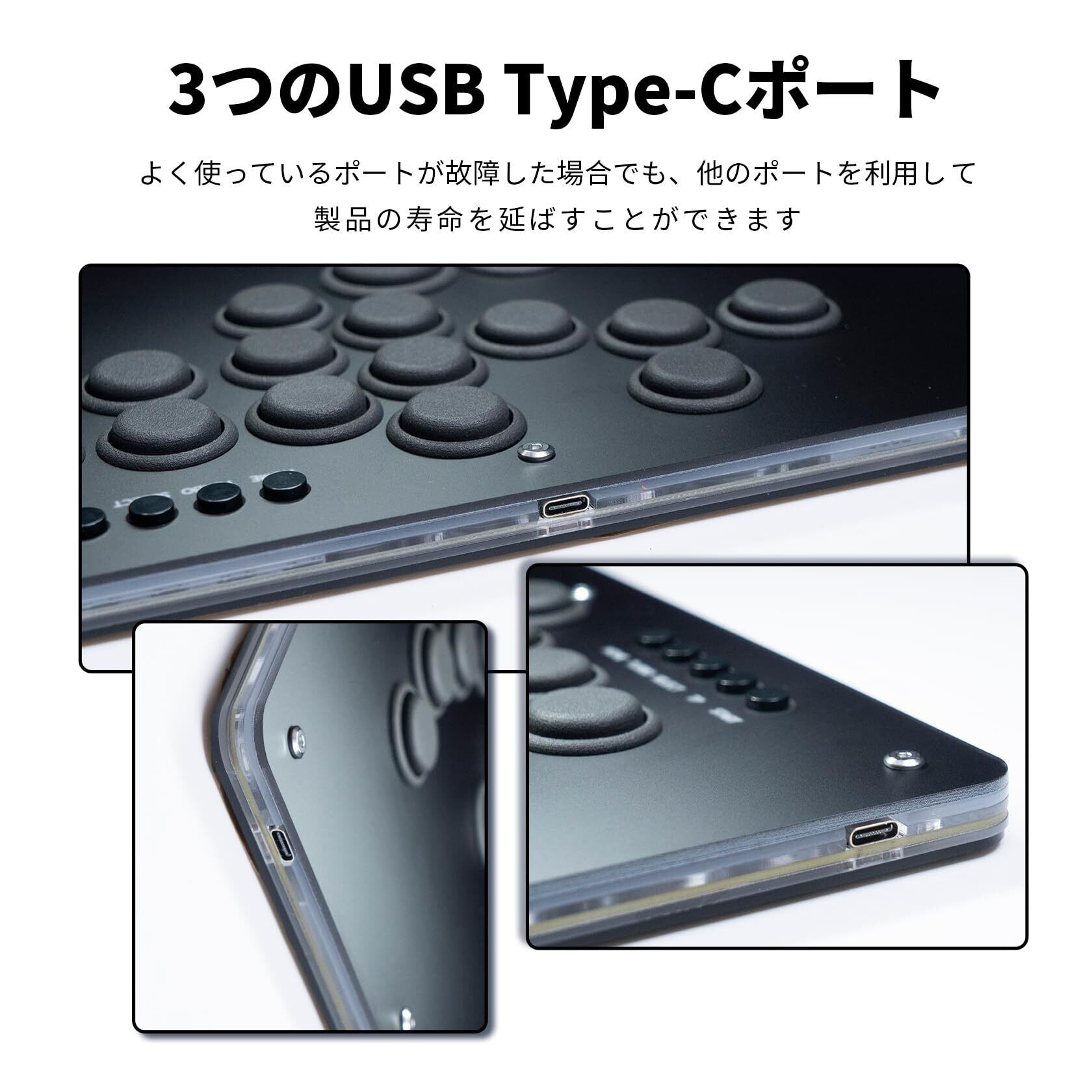 【超薄型16ボタン仕様のレバーレスアーケードコントローラー】これはスリムでジョイスティックを搭載しない16ボタンの格闘ゲーム用コントローラーです。薄いボディと大きなパネルが特徴です。格闘ゲームでは、伝統的なゲームジョイスティックを凌駕する高速で正確な入力が可能で、このコントローラーの使用が推奨されます。高精度の4方向ボタンと高速メカニカルアクチュエータを搭載し、ゲームでの誤った指令入力の確率を大幅に下げることができます。换句话说、従来のアーケードスティックと比較して、このコントローラーは方向キーの入力遅延と制御精度において圧倒的な優位性を持っています。このコントローラーは非常に高い互換性を持っており、以下のプラットフォームに対応しています:PC/Steam Deck/PS5/PS3、4/N Switch2。