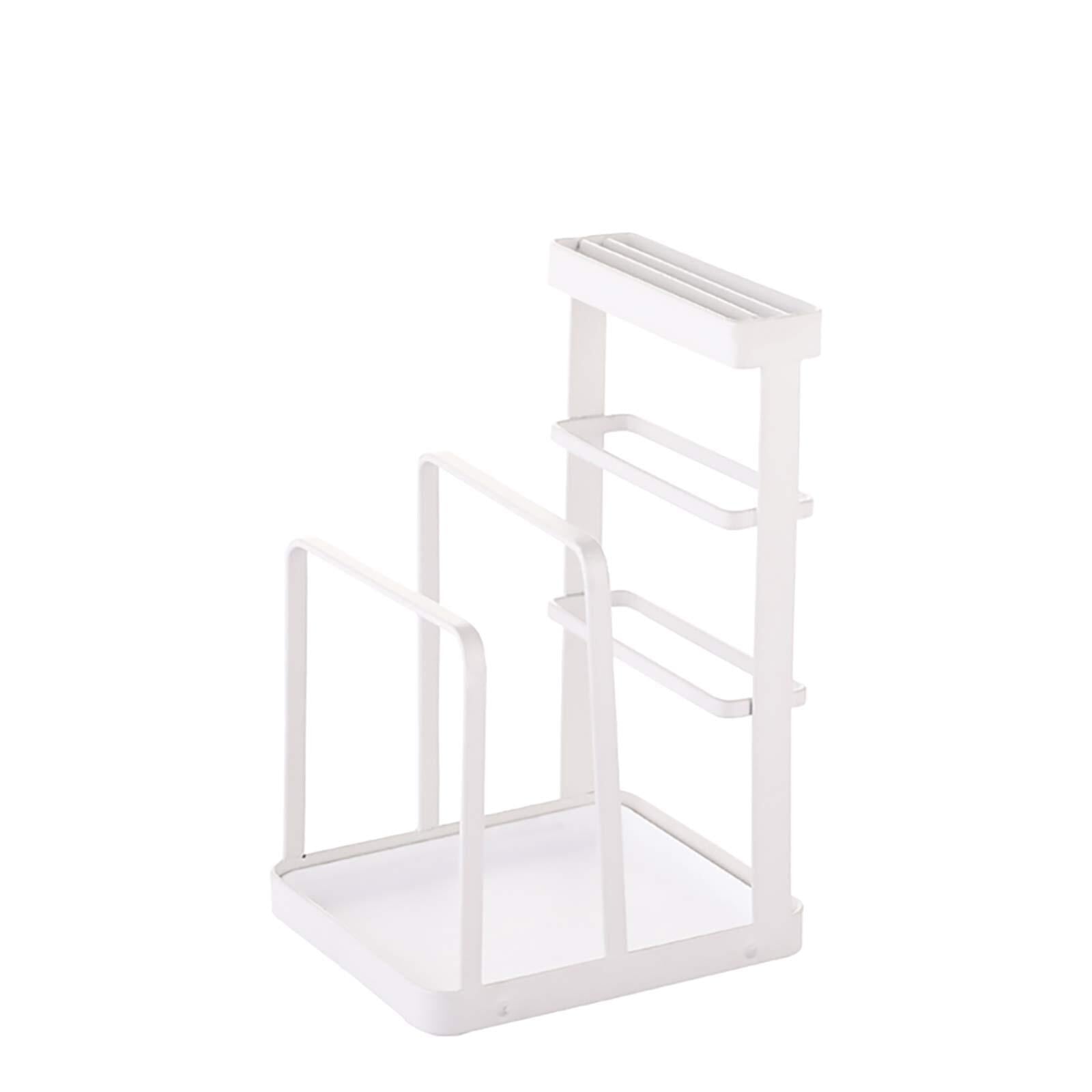 「多機能収納ラック」:包丁立て、まな板立てや鍋蓋スタンドを一体化して、様々な種類の包丁、ナイフ、まな板が収納できるおしゃれな包丁スタンドです。コンパクトで大容量、キッチンのスペースをを有効に活用。
