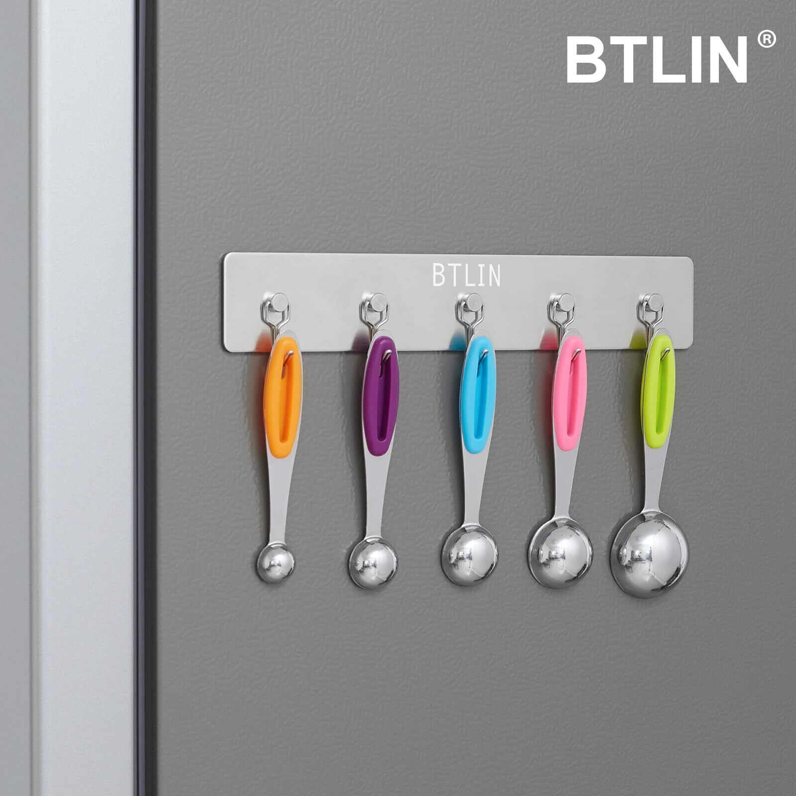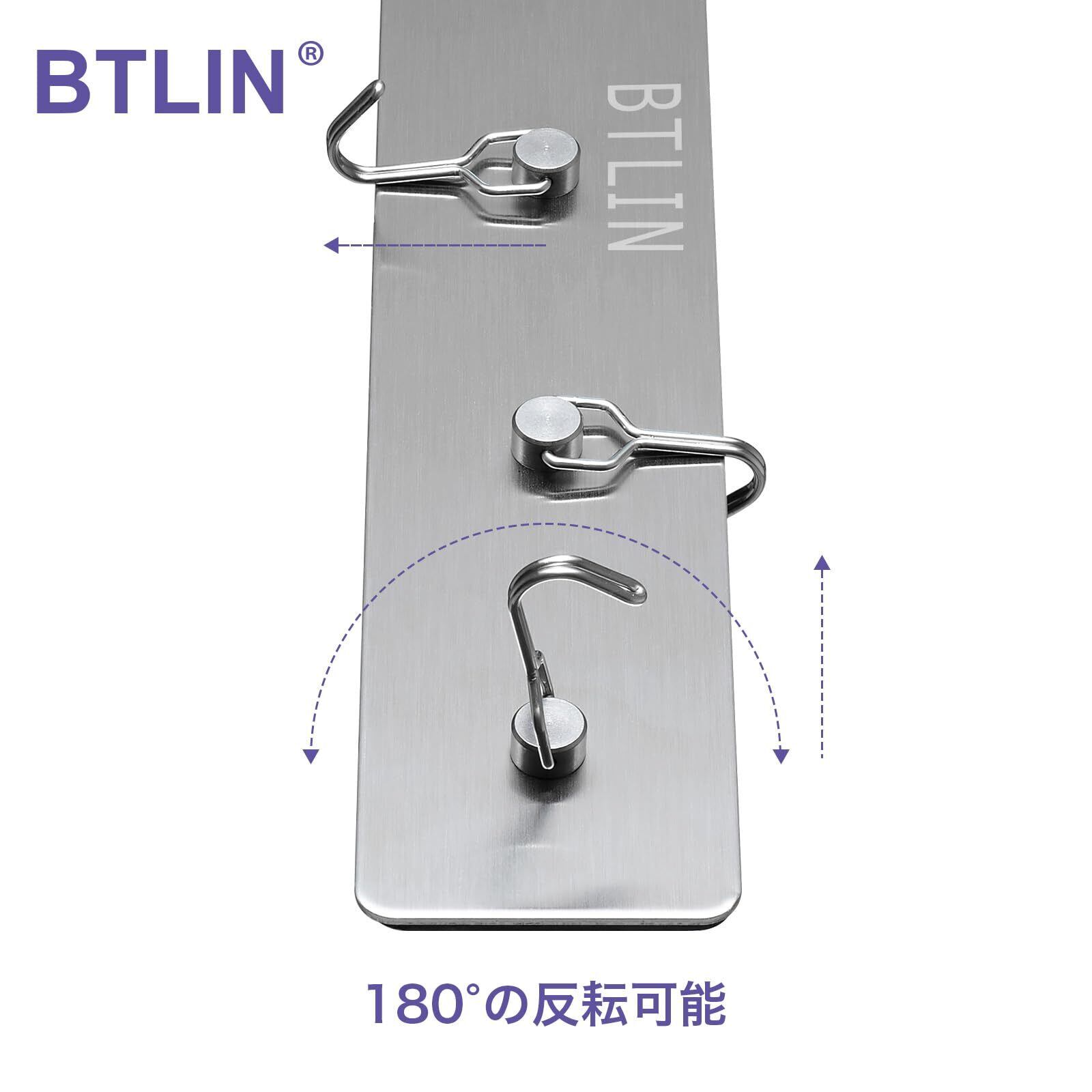 BTLIN マグネットレンジフードフック ステンレス 錆びない キッチンツールフック 冷蔵庫 レンジフード 浴室 収納用 5連 フック W26×D4.5×H3.8cm