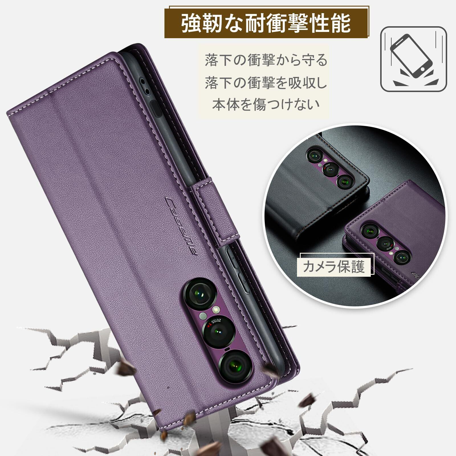 Xperia 1 VII ケース 手帳型 財布型 カードポケット付き Sony エクスペリア1vii / SO-51F 用 携帯カバー カード収納 Uovon スマホケース 高級レザー 耐衝撃 全面保護 スタンド機能 ストラップホール付き マグネット式 · パープル