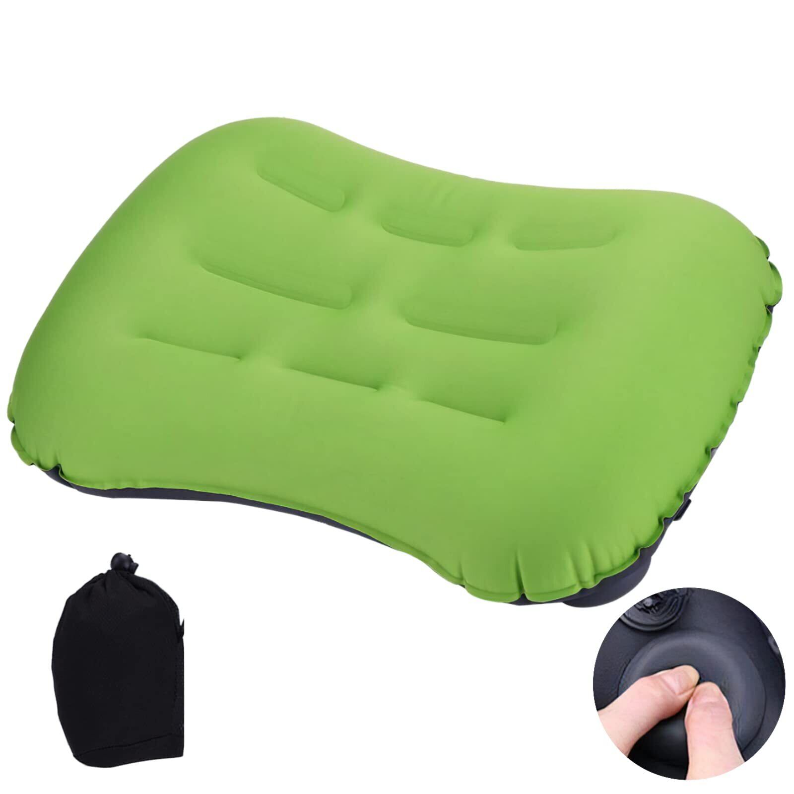 3Randy エアーピロー 手動プレス式 吹き込み式 収納袋付き アウトドア キャンプ 携帯枕 エアー枕 旅行枕 コンパクト トラベル 車中泊 事務室 (グリーン)