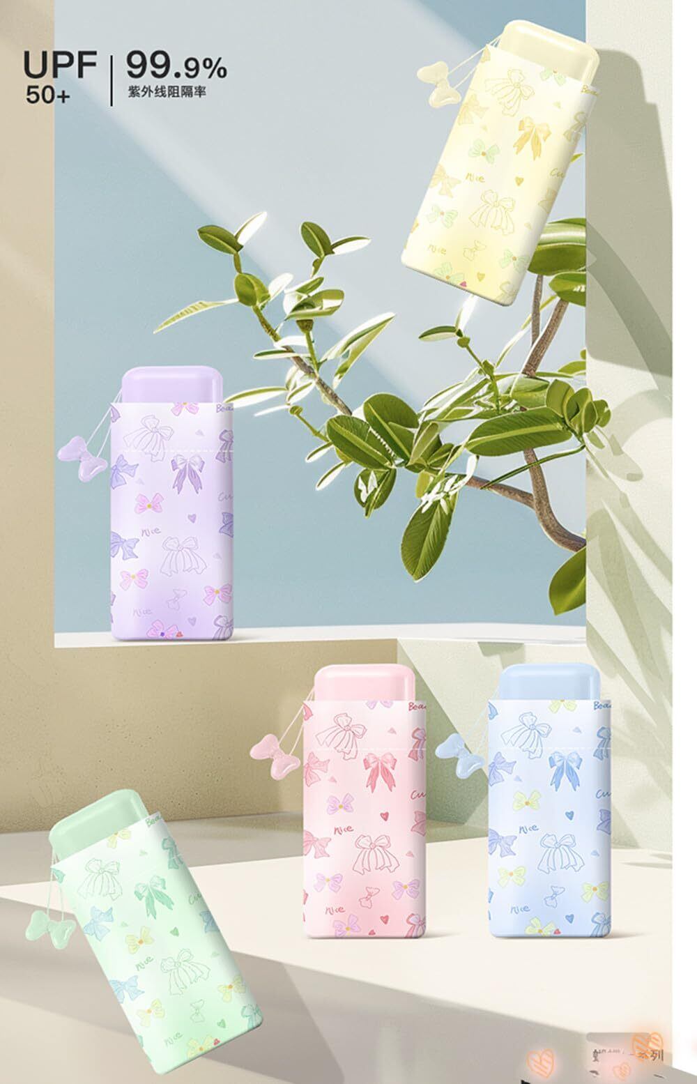 【超軽量・コンパクト折り畳み日傘】軽量折りたたみ傘キュートでボックス付き 軽くて丈夫なグラスファイバーとアルミ合金傘骨を採用し、構造材を最適化した折り畳み日傘です。通常より軽量化され、重さ220g、傘開き直径89 mm、高さ55 mm、折り畳んだらわずか4cmとスリムサイズ、バッグにかさばらずにすっぽり入り、携帯に便利!通学通勤など毎日持ち歩いても負担にならない、夏フェス、スポーツ観戦、ライブ、野外イベント、キャンプ、登山、遠足、旅行、アウトドア活動など、屋外でも快適に過ごせる暑さ対策グッズ.