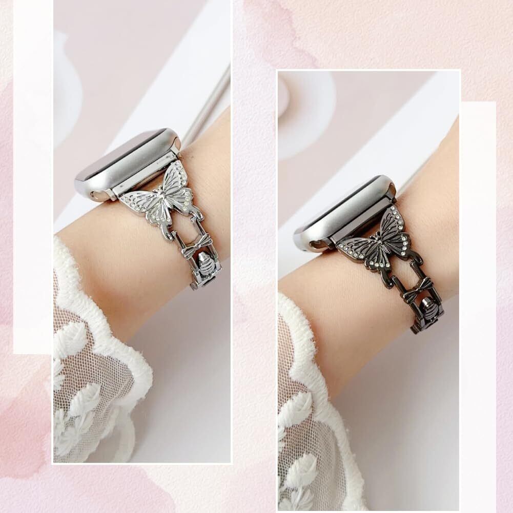[ALVEIN] アップルウォッチ用バンド ベルト apple watch レディース Series 9 8 7 6 5 4 3 2 1 対応 細め 調整可能 蝶 バタフライ