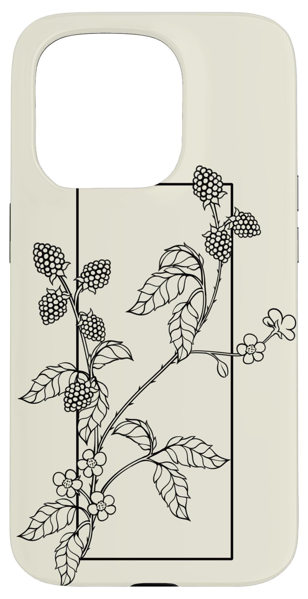 iPhone 15 Pro 花と葉のブラックベリーの枝 スマホケース