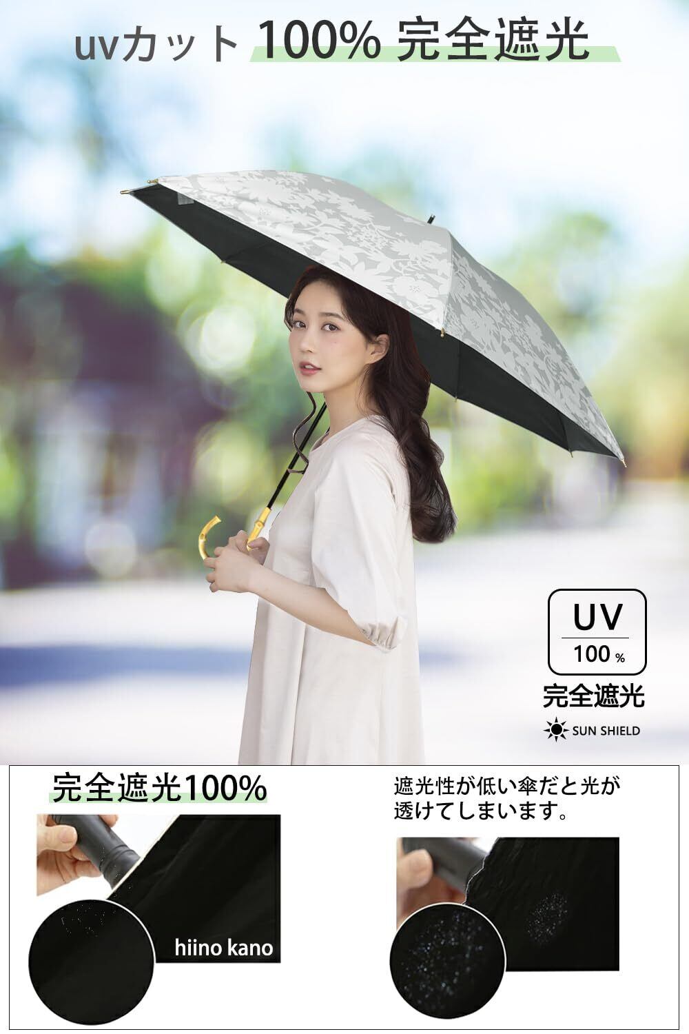 hiino kano 傘 レディース 日傘 uvカット 遮光 長傘 日傘兼用雨傘 レディース 超軽量 約250g バンブーハンドル 母の日のプレゼント 敬老の日 ギフト 誕生日プレゼント おしゃれ 晴雨兼用傘 超撥水 遮光遮熱 8本骨 親骨50cm