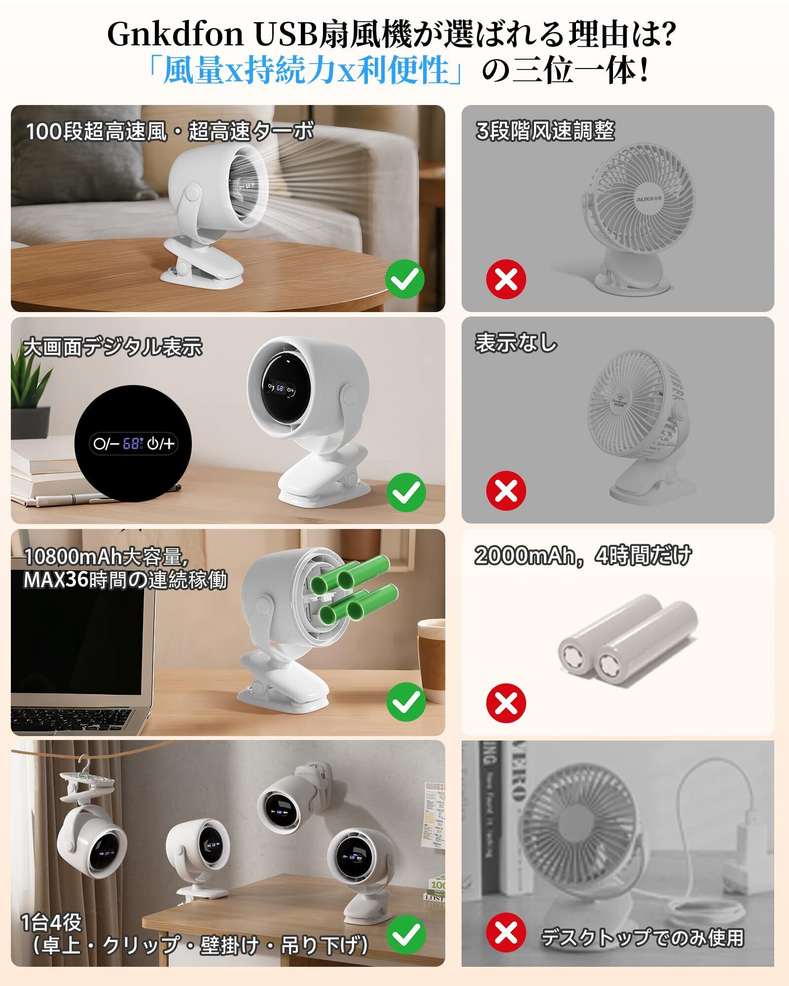 【Amazon.co.jp限定】クリップ 扇風機 卓上扇風機 小型 静音 USB ファン 【100段階風量調節/10800mAh大容量/LEDライト付き/360度角度調整】首振り 充電式 超強風 強力 ミニ コンパクト サーキュレーター 壁掛け 携帯 ファン Type-C急速充電 オフィス 車用 リビング キャンプ 寝室 アウトドア トイレ用 熱中症対策
