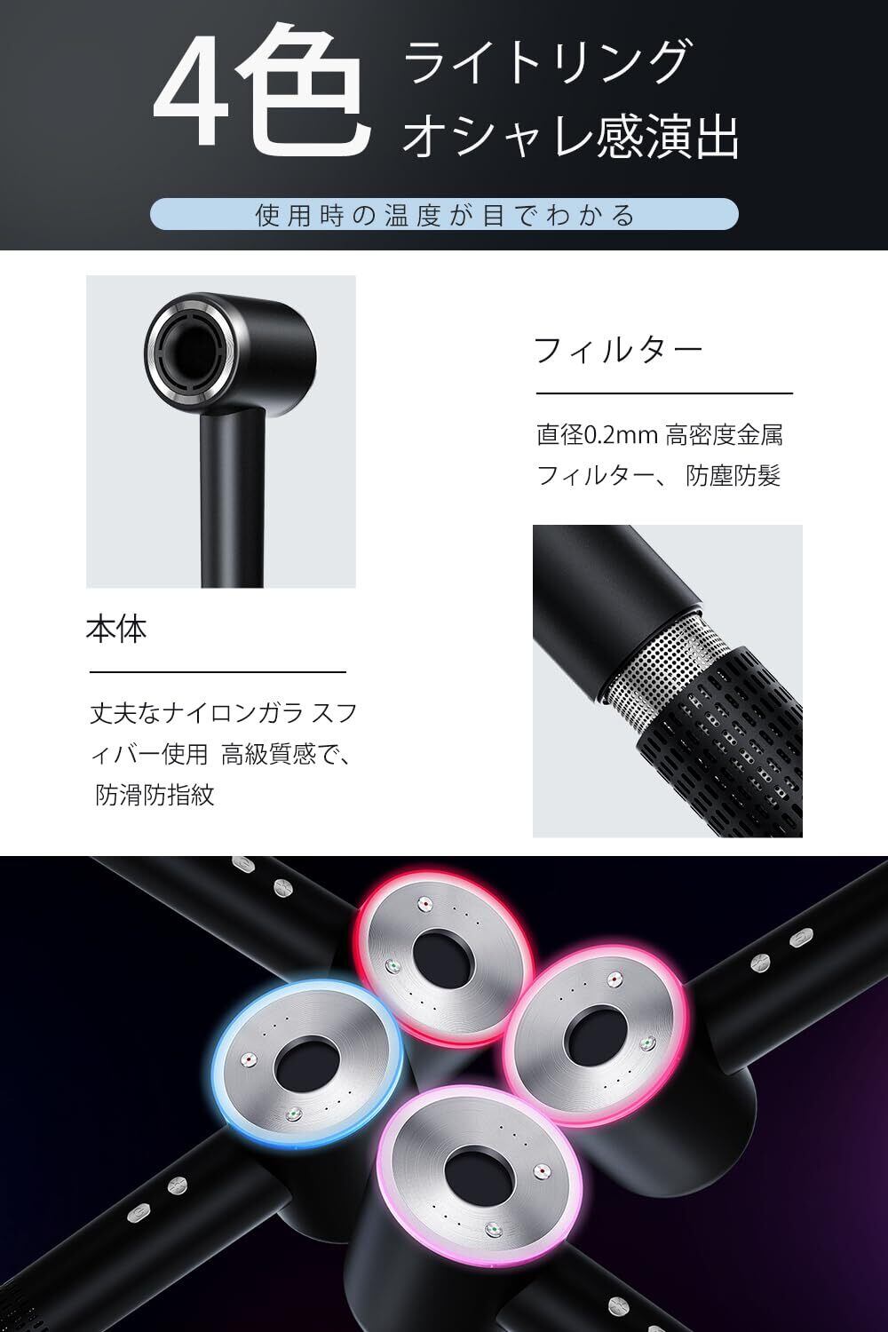 特徴 3億マイナスイオン搭載, 4段階温度×3段階風量&スマート温度調整, 大風量ドライヤーで速乾&時短, 磁気ノズル, 軽量