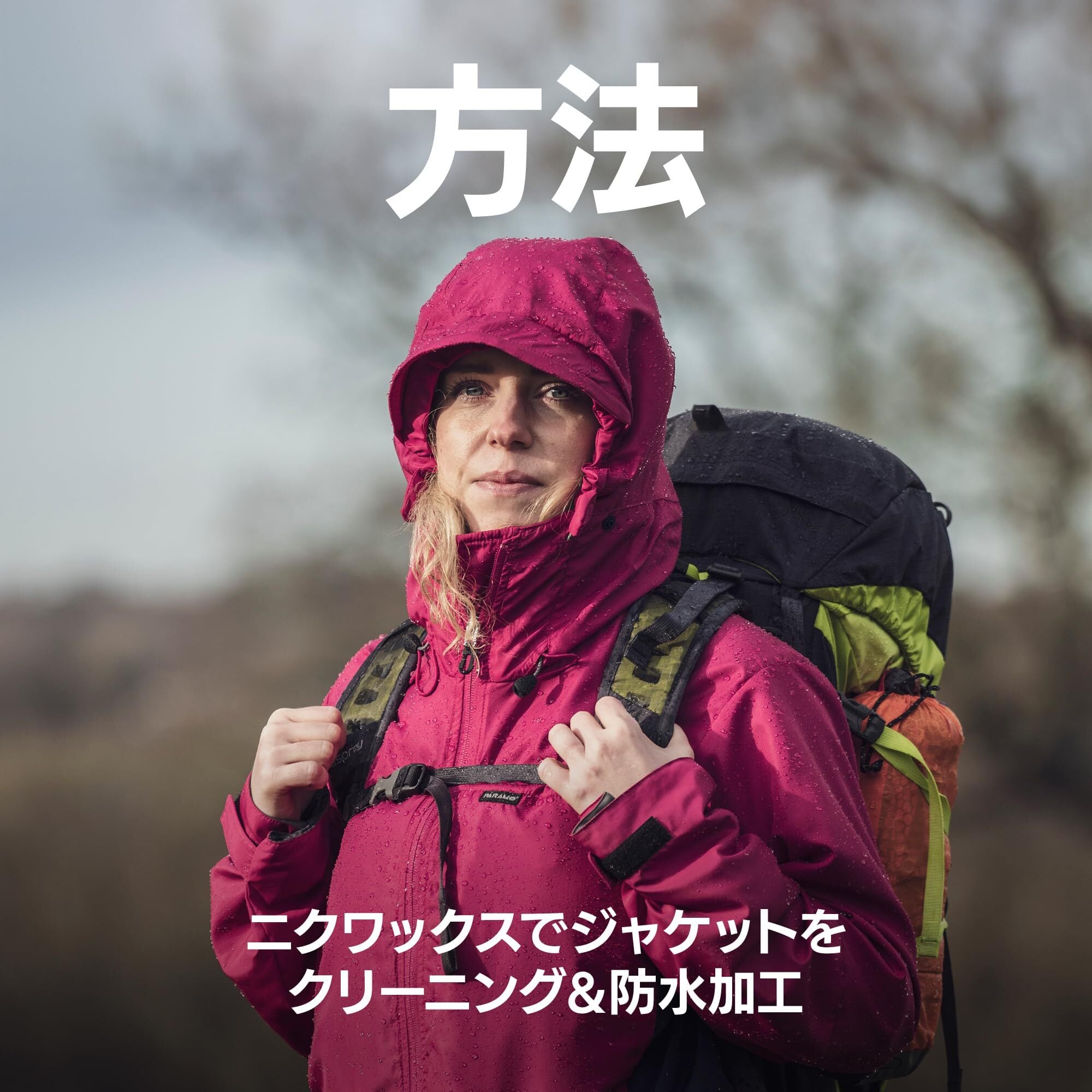 使い方は簡単:洗濯機でも手洗いでも簡単に使用できます。ご使用前には、必ずニクワックス(nikwax)テックウォッシュ洗濯洗剤で洗濯してください