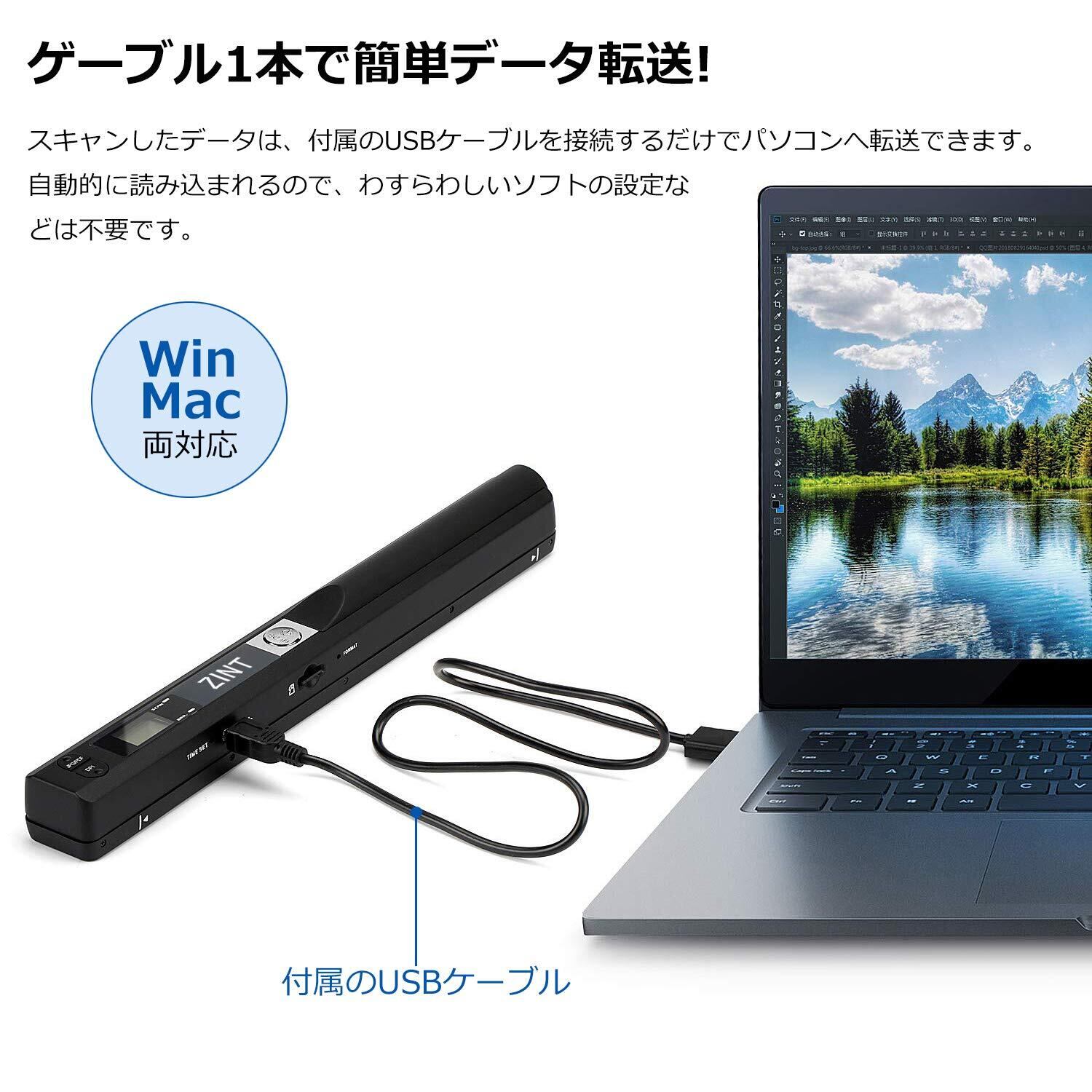 ZINT スキャナー ハンディスキャナー 最大900dpi対応 OCR機能搭載 モバイルスキャナー ドキュメントスキャナー 自動保存 JPG PDF A4用紙 手持ち 電池式 持ち運び便利 本 書籍 写真 名刺など 32GBのSDカード付き 日本語説明書付き