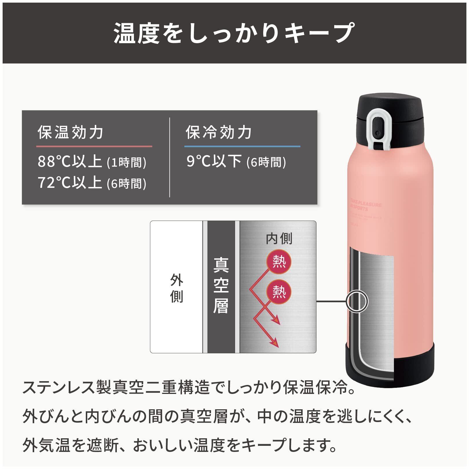 カラー:サーモンピンク スリムで携帯しやすく飲みやすい大容量ワンタッチオープンマグ 片手で簡単ワンタッチオープン。ロックリング付きだから、持ち運に便利 スリムで持ちやすく飲みや すい 傷や衝撃から瓶底を守るカバー付き スポーツドリンク対応ボトル。内瓶には塩分に強いSUS316を採用している