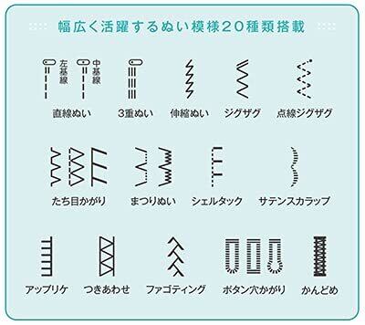 ■POINT 1:使いやすい 【3ステップ糸通し】簡単な操作で上糸が通せる!めんどうな針穴への糸通しは、レバー操作で簡単です。 【下糸クイック】下糸を引き出さなくても、すぐ縫える!下糸を引き出さなくても、ボビンを入れて矢印にそって糸を通すだけで、すぐに縫い始められます。 【簡単下糸巻き】面倒な下糸準備も手軽にできる! ボビンに糸を5~6回巻き付けて台座の溝に通し、ボタンを押すだけで下糸巻きが完了します。 ■POINT 2:しっかり縫える 【6枚送り歯】縫い心地はサクサク快適 薄い布も熱い布もしっかり布を送ってくれるから、キレイに縫えます。 【押え固定ピン】分厚いものも、水平キープ 押えを水平にキープしてくれるから、デニムなどの厚いものの縫い始めがスムーズになります。 【全自動ボタン穴かがり】付けたいボタンをセットするだけ 押えの台皿にボタンをセットすれば、ぴったりのボタン穴かがりが自動でできます。 【エラーメッセージ】エラー音と液晶表示でお知らせ 押えの下ろし忘れなどを音と液晶表示で知らせてくれるから、操作を間違ったときも安心です。 【より細かい調整】自動返しぬい/止めぬい ぬい始めとぬい終わりに、自動で返しぬい又は止めぬいをするように設定できます。 ぬい目お好み調整 ぬい目の長さ・振り幅を調整することができ、ソーイングの幅が広がります。 ■POINT 3:コンパクト 【コンパクトだけど広いフトコロ】手元のスペースはしっかりキープ!