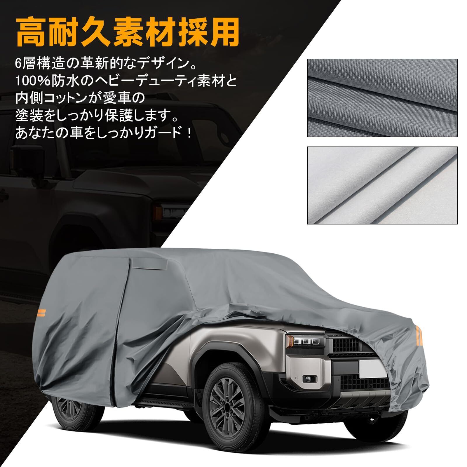 Tusamika 車カバー トヨタ ランドクルーザー 2007-2024 加厚 ボディカバー 裏起毛 黄砂対策 防水防塵防輻射紫外線 弾力な防風ロープ付き 四季対応(Land Cruiser H19-R6/Land Cruiser Prado H21-R6)