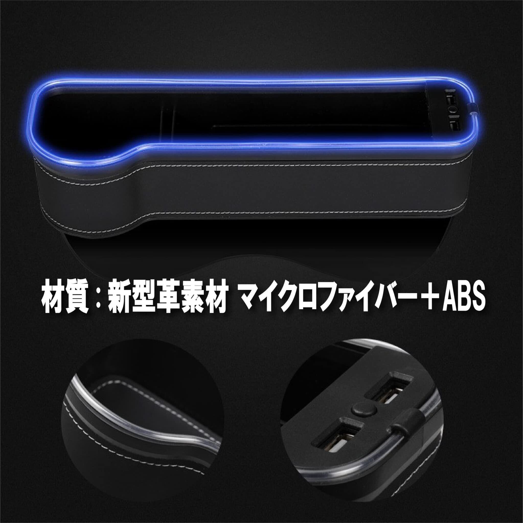 【高品質 / 簡単取り付け】:様々な車種にご使用できるコンソールサイドポケットです。革材料として新しく注目を浴びているマイクロファイバーとABS素材を使用しており、とても高級感溢れる仕様になっております。外観 手触り共にとても良い品質に仕上がっております。取り付けはとても簡単で、フロントシートとコンソールボックスの間に差し込むだけでOKです。【大容量のポケット / 豊富な収納能力】:イメージ画像を参照していただくとお分かりになる通り本商品は豊富な収納スペースがとても魅力的になっております。ペットボトル、携帯電話、お財布、キーケース 等を全て収納できるスペースを持っており、私物の散乱を防止します。【デュアルUSB 2ポート完備 / 簡単清掃】:本商品にはQC3.0対応の急送充電USBポートが2カ所搭載されてるので携帯電話の充電 等にお使いいただけます。 尚、収納部分はプラスチックの材質を使用しておりますので清掃面でも簡単らくちん、ウェットティッシュ 等での拭き掃除のみでOKです。【7色のLEDライトアップで車内を彩る】:本商品には7色のLEDライトが設置されており、次々とカラーが変わるマルチモード/ボタンを押してお好みのカラーでライトアップさせる単色モードを搭載しております。LEDが必要のない時はボタンを長押しでライトが消灯しますので車内のイメージアップ、カスタマイズにも最適です。【商品内容】①運転席用×1 助手席用×1の2個セット ②運転席用×1 ③助手席用×1 の3種類をご用意しております(ブラック、ベージュ、レッドの色選択可能)【材質】・マイクロファイバー+ABS【サイズ】・285mm×168mm×70mm【カラー】ブラック/ベージュ/レッド の3種類をご用意しております【注意事項】・本商品はフロントシートとコンソールボックスの隙間に差し込んで設置するタイプですが、隙間が広い場合(約4CM以上)はテープやパッキン 等で微調整をしていただく場合が御座います。