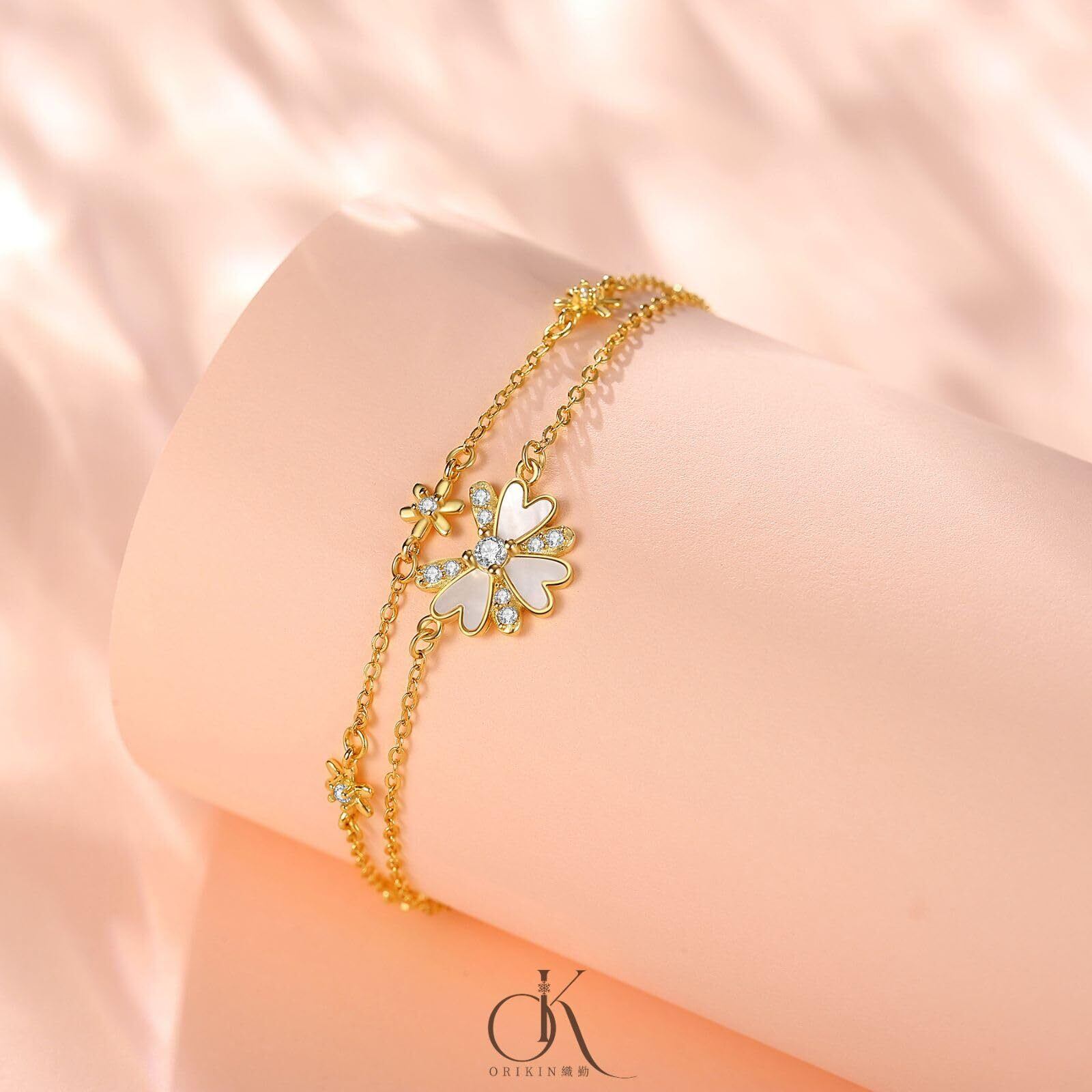 【在庫セール】[ORIKIN] ネックレス レディース 雛菊ネックレス レディース ブレスレット レディース イヤリング 雛菊ペンダント アクセサリー 金属アレルギー対応ネックレス キュービックジルコニア シルバー925 雛菊プレゼント女性 40+5cm