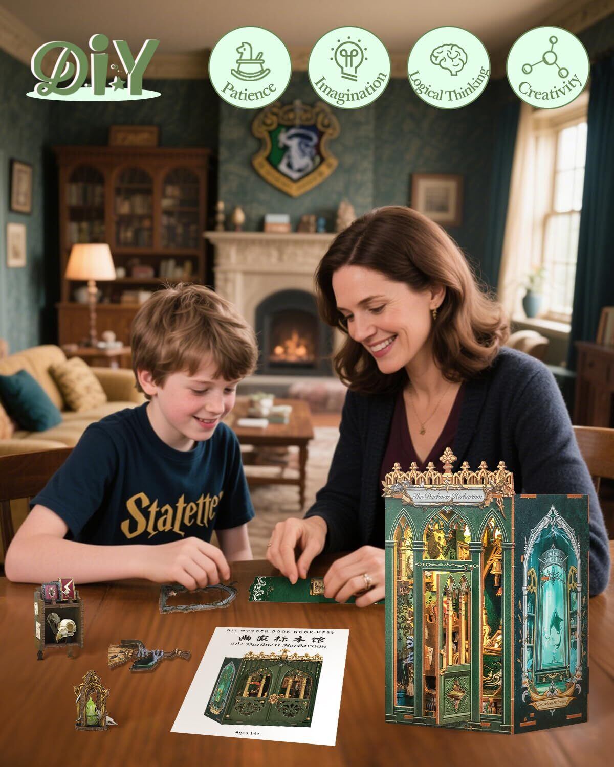 CuteBee DIY ブックヌックキット ドールハウスキットミニチュアハウスキットBookNook 3Dウッドクラフトブックエンド装飾 ティーンエイジャーと大人向け プレゼントに最適 LED付き (ダクな標本館)