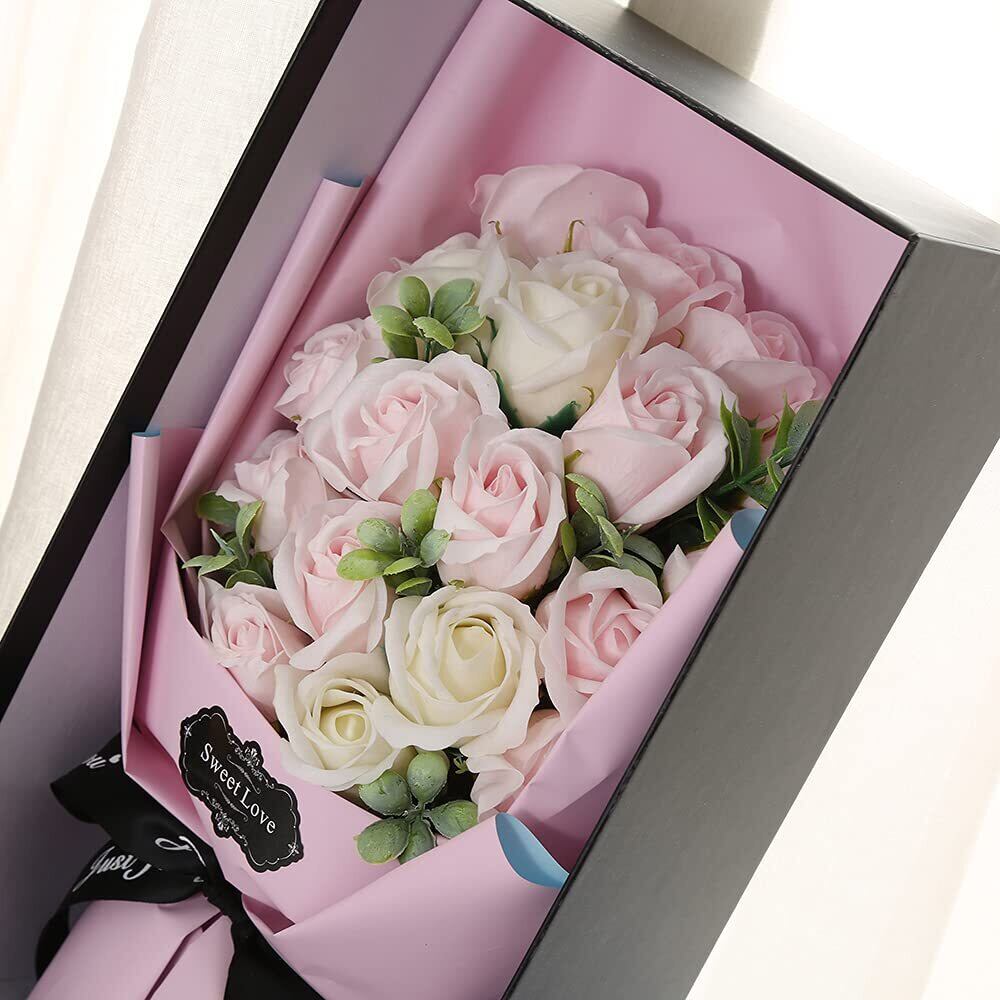 【新着商品】SCAMPER ソープフラワー 誕生日 プレゼント 女性 人気 花束 造花 ギフト ドライフラワー インテリア 結婚記念日 発表会 敬老の日 母の日 退職 祖母 彼女 送別会 専用のギフト バラの花束 ローズブーケ 記念日 贈り物 (ピンク)