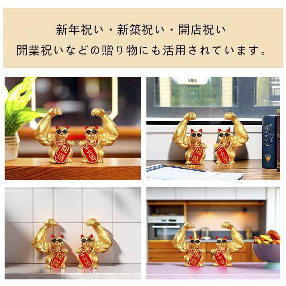 招き猫 材質:樹脂 サイス(約):長さ7CM×幅4cm×高さ10cm セット内容:開運招き猫*1 千万両招き猫*1 マット*2