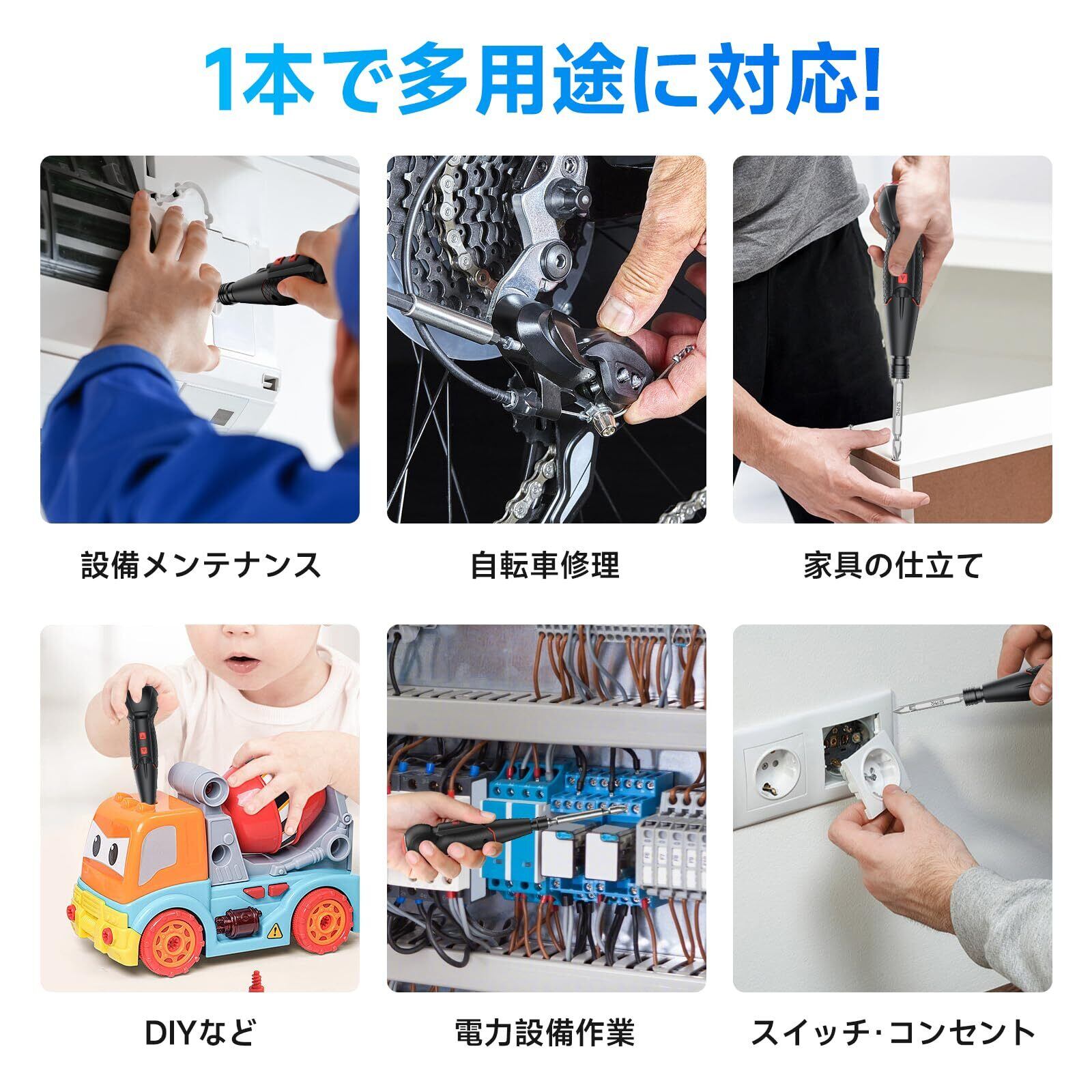【最新強化版電動ドライバー・手動兼用】この電動ドライバーは全銅モーターを使用しており、パワーが強く、寿命が長くなります。指一本で正回転・逆回転を自由に切り替えられます。最大トルクは電動で3N・m、手動で10N・mです。プロユースとしてだけでなく、家庭での普段使いでも最適。滑り止めボールグリップは使用中に持ちやすく、滑りにくく、締め付け性能が良く、重さはわずか156gで、長時間使用しても疲れにくく、取りやすいです。女性やお年寄りでも簡単にご利用いただけます。