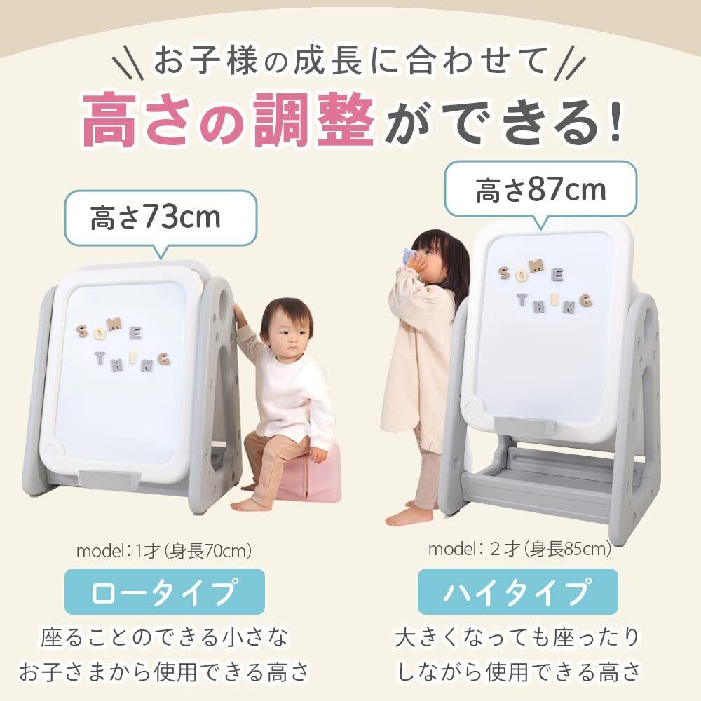 【2段階高さ調整可能】表面のホワイトボードはローとハイの2段階で高さの調整ができるから、成長に合わせて使えるのがうれしい成長とともに遊び方を変えていくこともできます!【ママもできる!5分で完成、2ステップ組み立て】特殊な工具は一切不要!付属の十字レンチを使って①パネルを組み合わせて②ナットを締めるだけの2ステップであっという間に組み立てることができるから、ママでも安心また本体は約4.8kgで掃除や移動も簡単です。【本体サイズ】W56×H73×D50cm、重さ約4.8kg【商品について】商品ページはイメージです。ホワイトボード用クレヨン、マーカー、クリーナー、収納BOX、マグネット等は付属しておりません。予めご了承ください。