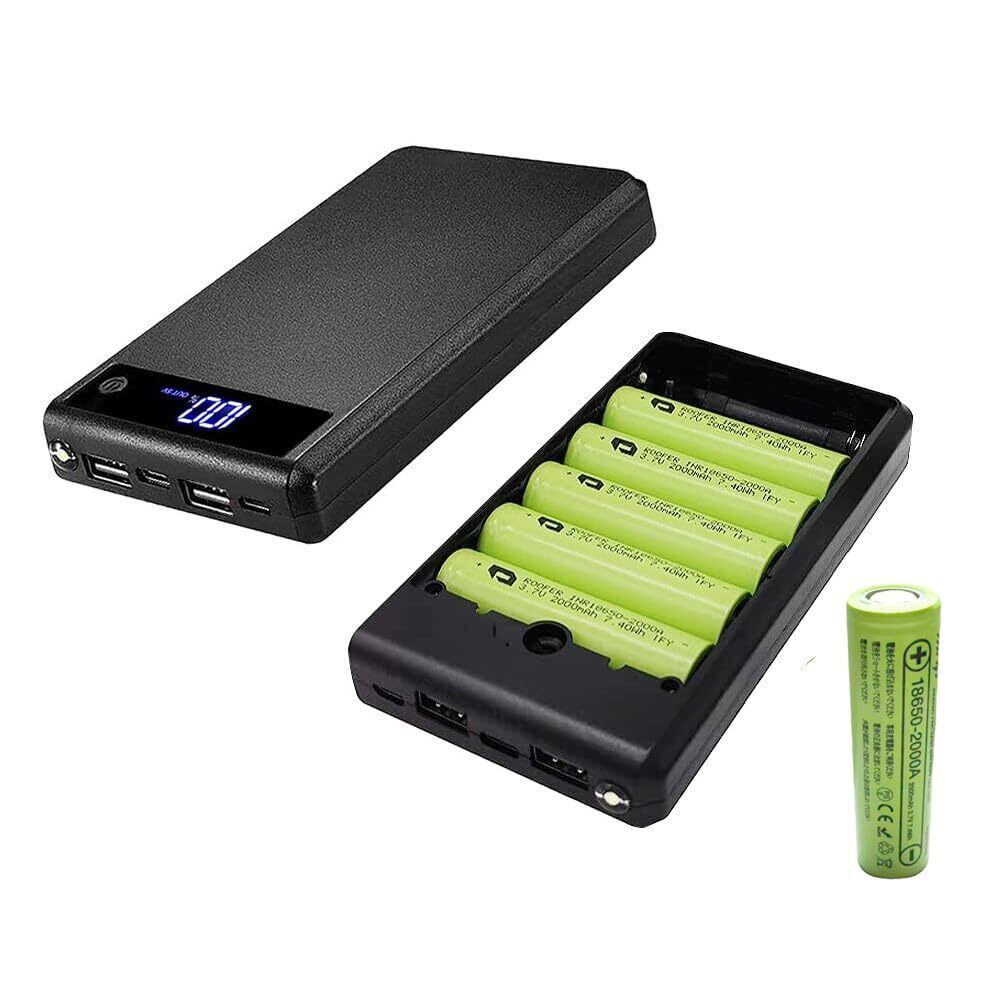 【特価セール】モバイルバッテリー 18650バッテリー 12000mAh大容量 LEDライト付き 1台3役 18650リチウム電池6本 バッテリー取り外し可能 2USBポート 10W急速充電 2台同時充電 LCD残量表示 Type-C/Micro-B入力ポート スマホ充電 携帯充電器 安全保護 PSE認証済