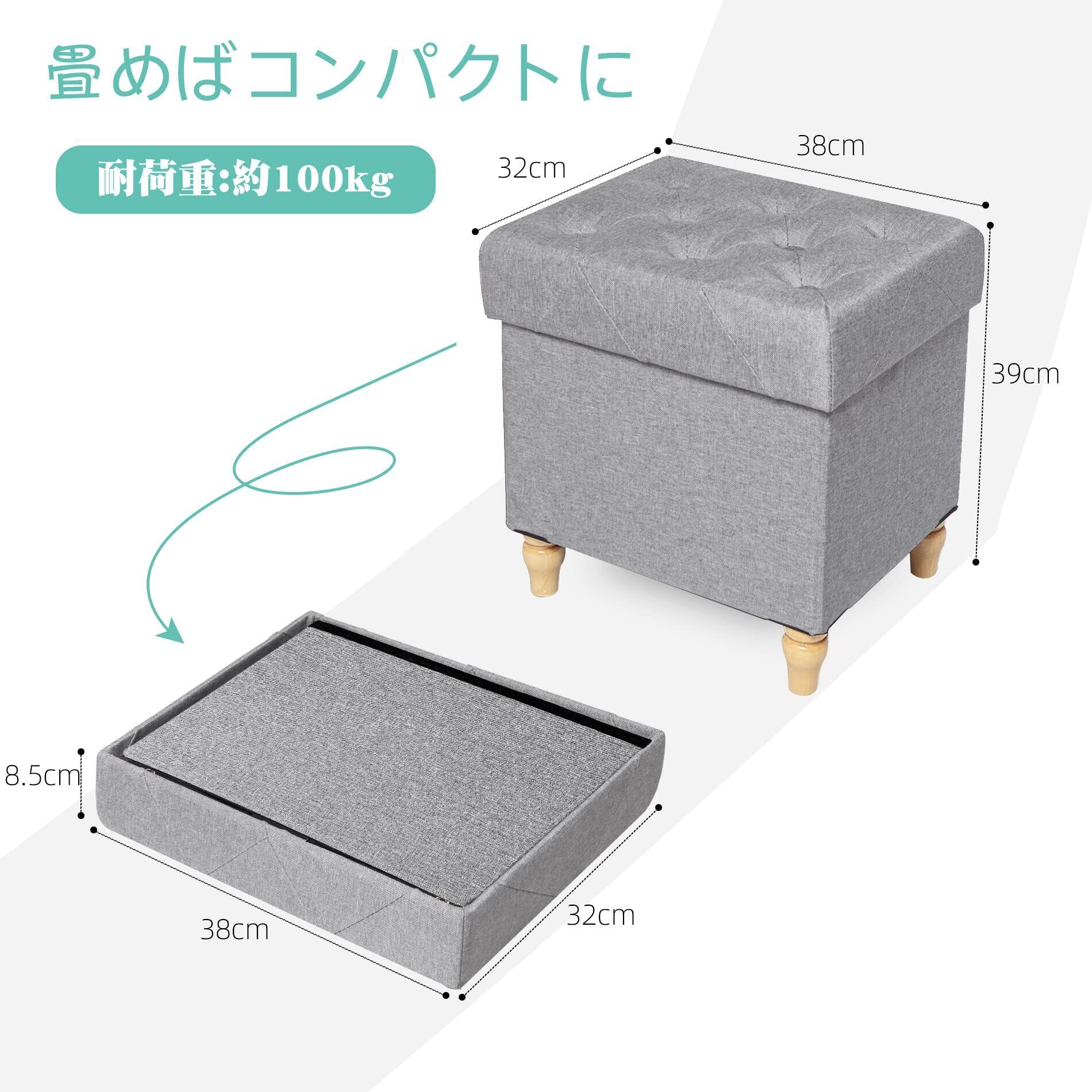 GLAXYFUR 収納スツール オットマン 脚付き 折りたたみ式 ストレージチェア ボックススツール 椅子 収納 フットレスト リネン生地製 リビング/玄関/寝室に適用38*32*39cm (ライトグレー)