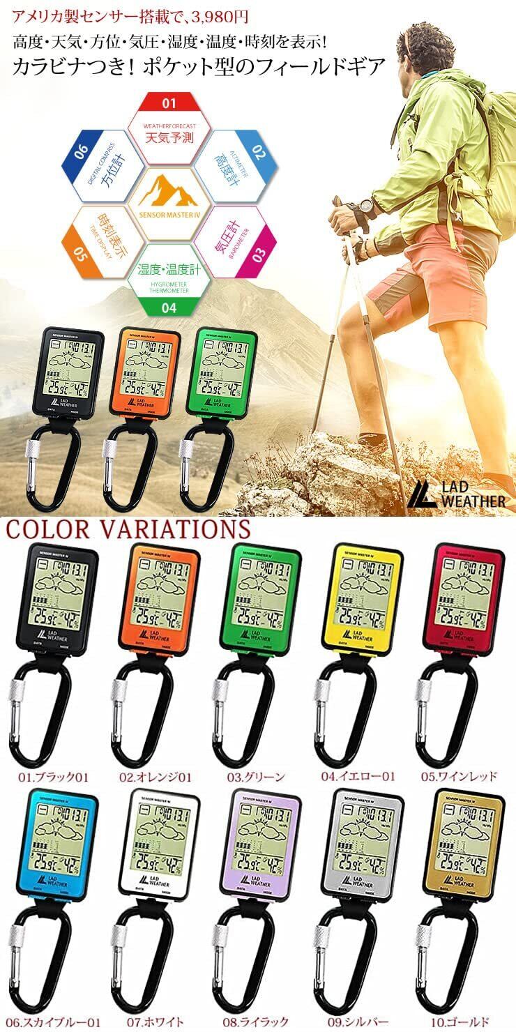 [ラドウェザー]アウトドア時計 方位 高度 気圧 温度 天気予測 デジタルコンパス カラビナウォッチ
