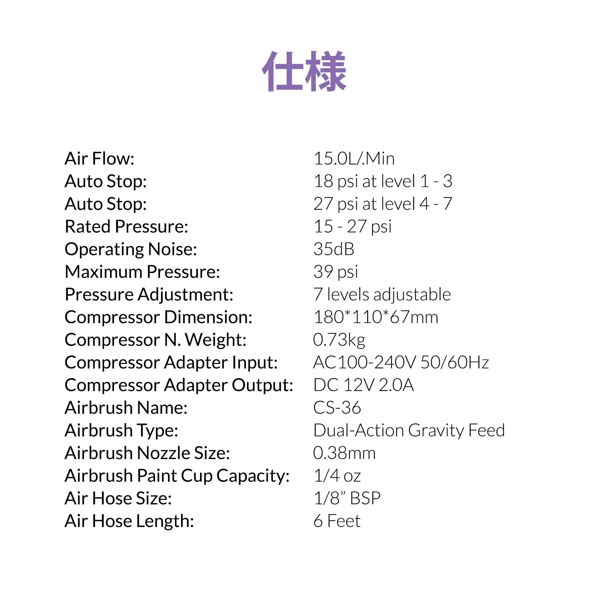 小型ながらパワフル:コンパクトなサイズにもかかわらず、コンプレッサーは7つの圧力レベルと27PSIの最大空気圧出力を誇り、エアブラシモデリングのニーズすべてに対応する汎用性を提供します。 このミニコンプレッサーで最大2つのエアブラシを同時に接続し、ツールを簡単に切り替えて、さまざまなプロジェクト要件に簡単に適応できます。
