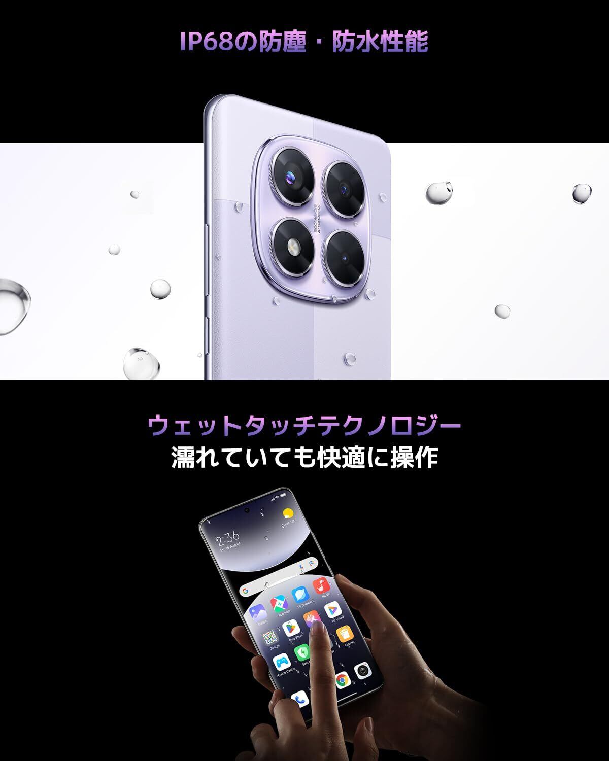 IP68の防塵・防水性能:フラッグシップレベルの IP68保護機能が搭載されており、最大 1.5 メートルの水に最大 30 分間浸漬しても耐えられるようにテストされています。