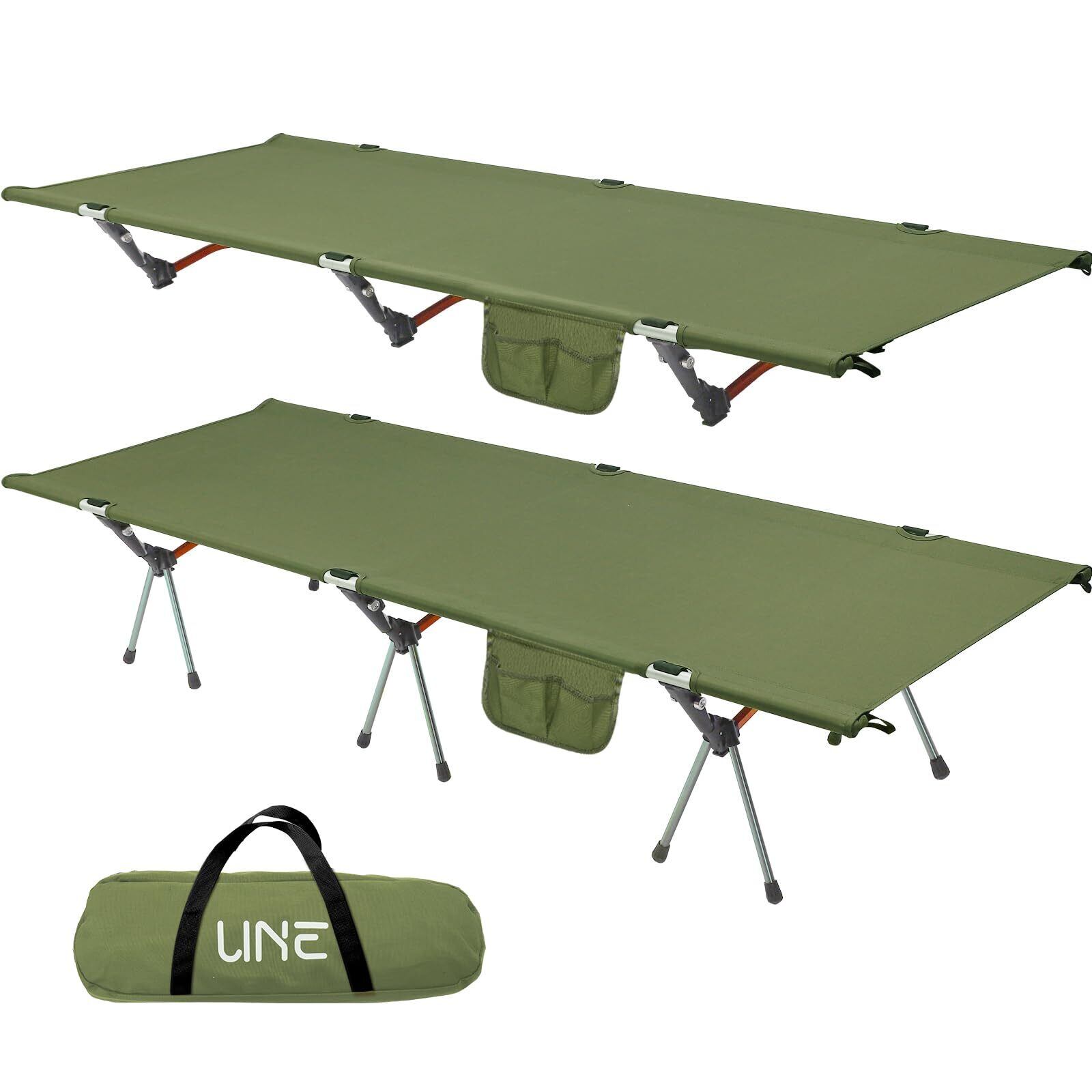 【特価セール】UNE コット キャンプコット 2WAY アジャスタブル アウトドアベッド 耐荷重150kg 防水 通気性 アップグレード版 軽量 静音設計 ハイ/ロー切替可能 組立簡易 バイクツーリング 野外用 防災 自宅用 会社用 収納バッグ付き 日本語説明書付き (緑)
