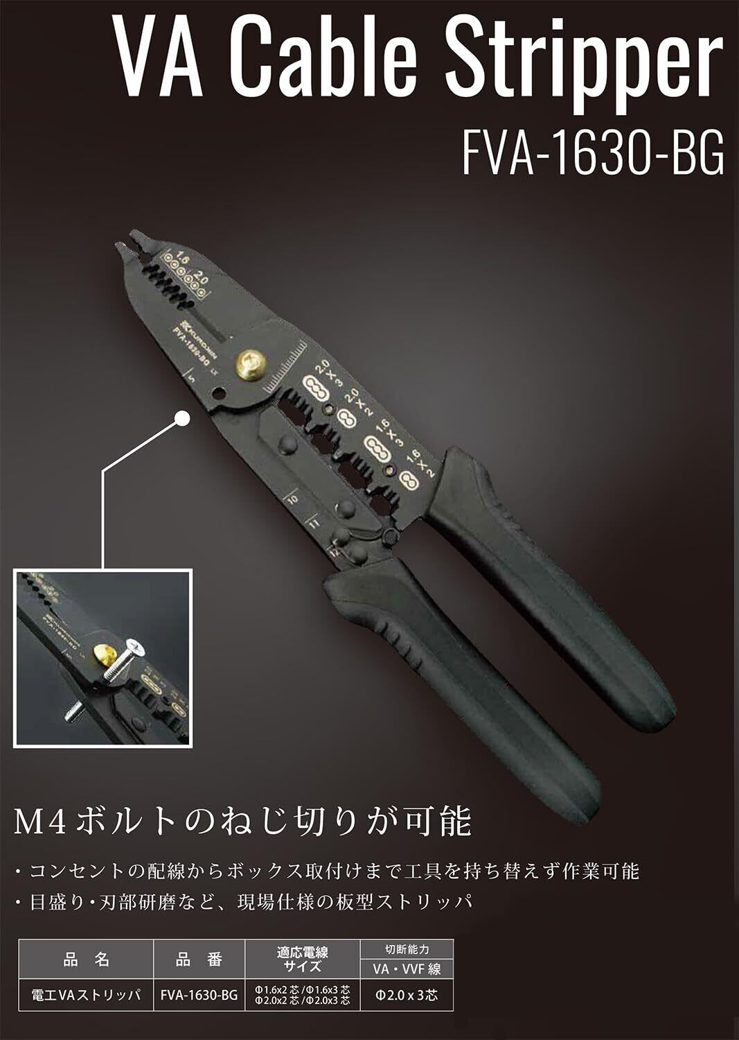 【新着商品】フジ矢 電工VAストリッパ 黒金 FVA-1630-BG
