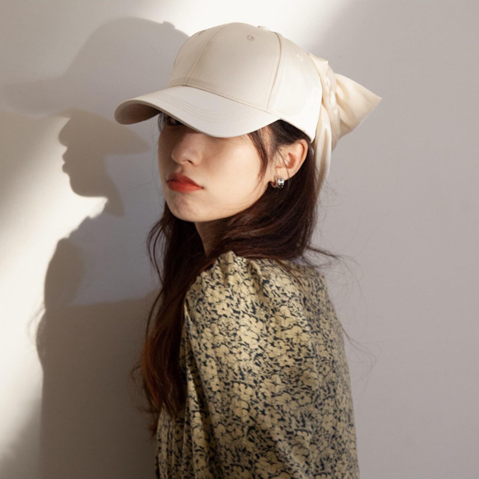 後ろ姿を華やかに演出する大きめリボン付きデザイン。結び目のディテールにこだわり、ヘアスタイルを崩さず可愛さアップ。デートやお出かけ、フェスや旅行など、写真映えするスタイリングにぴったりなレディースキャップ。