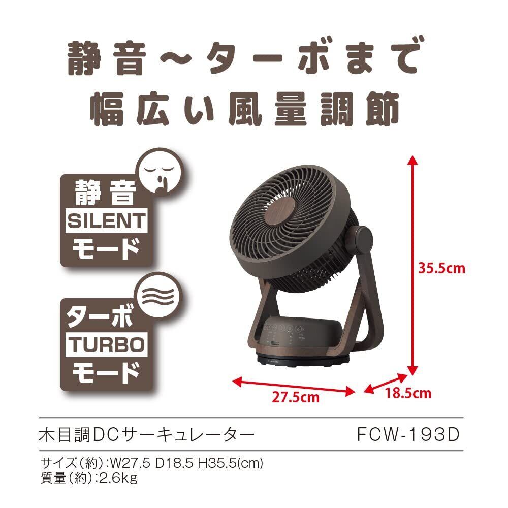 ドウシシャ サーキュレーター DC 木目調 19㎝ 首振り 風量4段階 リモコン付き ピエリア ダークウッド