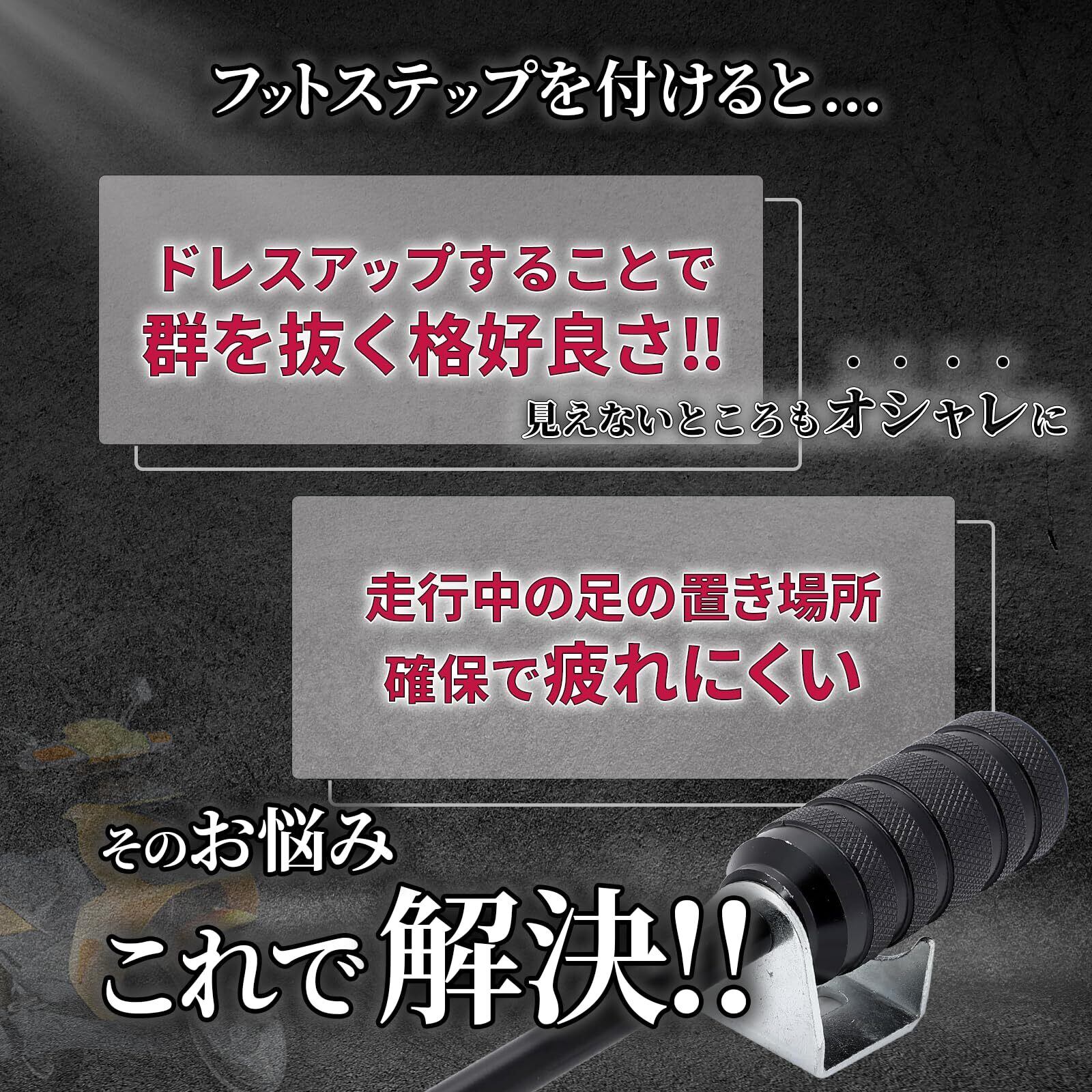高級感とスタイリッシュさを兼ね備えたスクーター用フットステップバーです。ドレスアップに加え、走行中の足の踏み場が固定され、踏ん張りが効きやすくなります。ケツ上げキットなどと併用し愛車をスタイリッシュにしませんか?