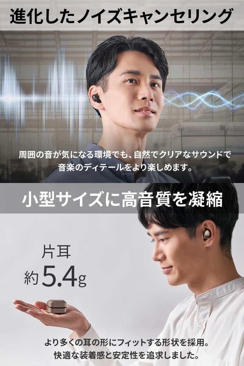 【優れた描写でありながら角のない“なめらかな”サウンド】日本古来から楽器の弦などにも用いられている天然素材のシルク(絹)に着目し、その成分をカーボンコーティングされたベース部に付加した、大口径11mmのシルクレイヤーカーボン振動板を開発。シルク(絹)の特性であるなめらかさにより、瑞々しい豊かな響きの音(優れた描写でありながら角のない“なめらかな”サウンド)を実現しました。また、磁気回路やボイスコイルなどに、有線ハイクラスイヤホン同等のパーツを採用して設計するとともに、音響用チャンバー構成部品にはステンレスを採用。余分な振動を徹底排除し、ディテールの正確な再現力、伸びのあるクリアな表現、および広く見通しの良い音場の再現による密度の高いサウンドを実現しています。